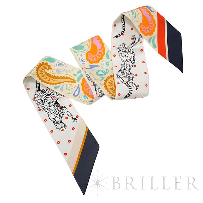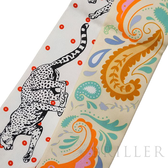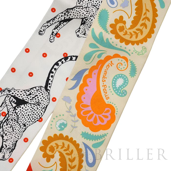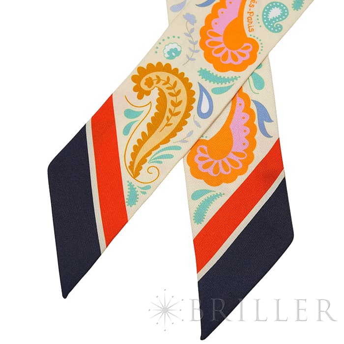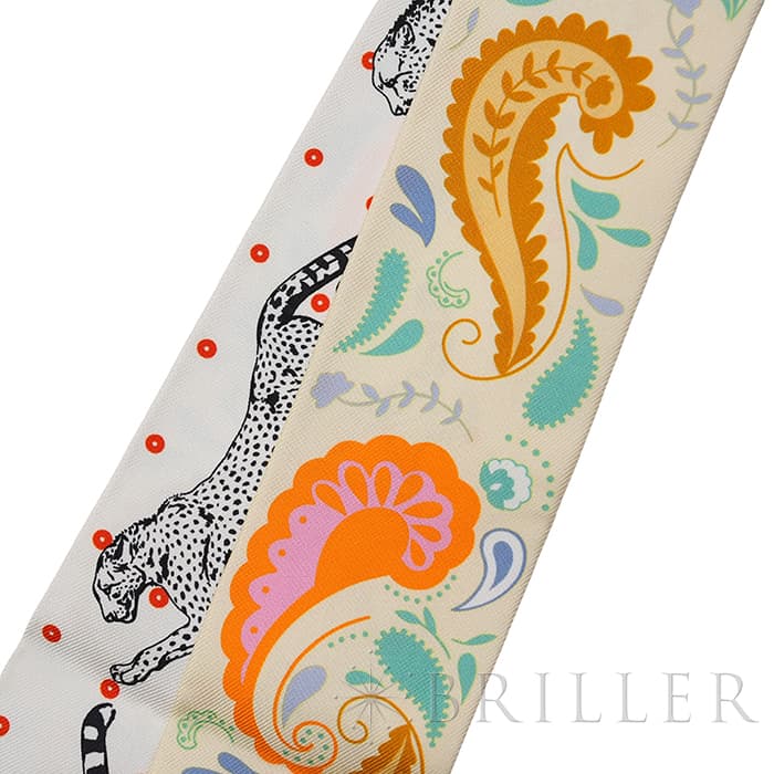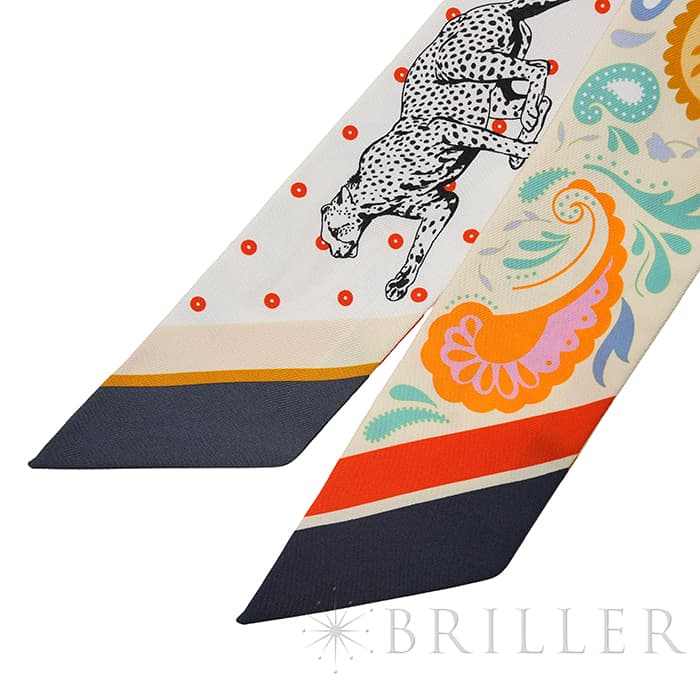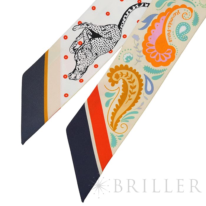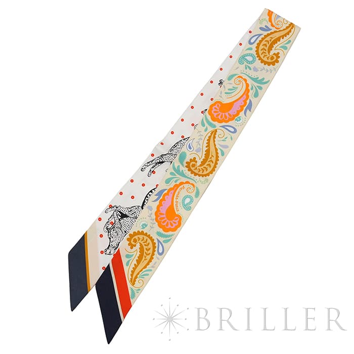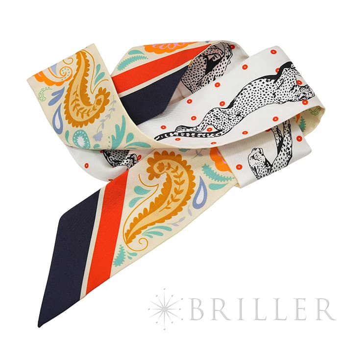 エルメスのシルクは優れた品質と、デザインに対しての情熱、ふんだんに取り入れた遊び心やユーモアがあふれています。ハンドルにくるくると巻いていただくと、ガラリとお手持ちのエルメスの印象が変わります。マルチカラーなので、巻き方を変えて頂くと更に楽しみの幅が広がります。ハンドルの汚れ防止にも一役買いますし、もちろん自身のファッションにもお使いいただけます。ヘアバンドにしたり、首に巻いたりとユースフルな「ツイリー」を是非ご検討ください。