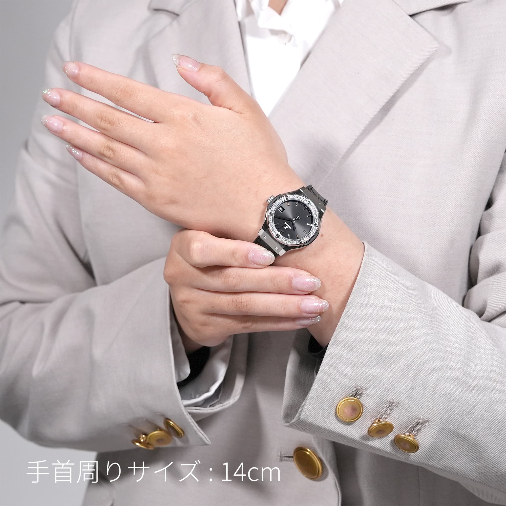 写真の場合、手首周りは「14cm」となります。