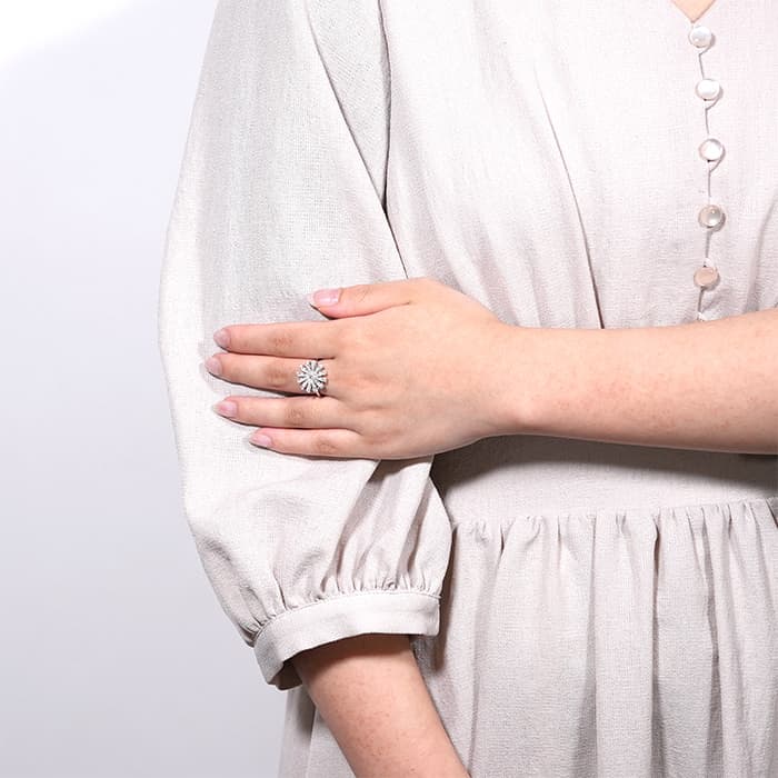 ダミアーニの人気コレクション「マーガレットの花」を意味する「マルゲリータ」リングが入荷いたしました。二十世紀の初めにエンリーコ・グラッシ・ダミアーニがマルゲリータ女王に捧げた指輪から着想を得たコレクションです。 マーガレットの花が、さまざまな宝石の光で優雅に輝き、繊細でロマンチックな女性の美しさを際立たせます。こちらはホワイトゴールドにダイヤモンドが上品な組み合わせです。
