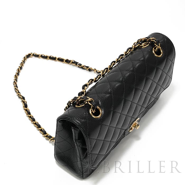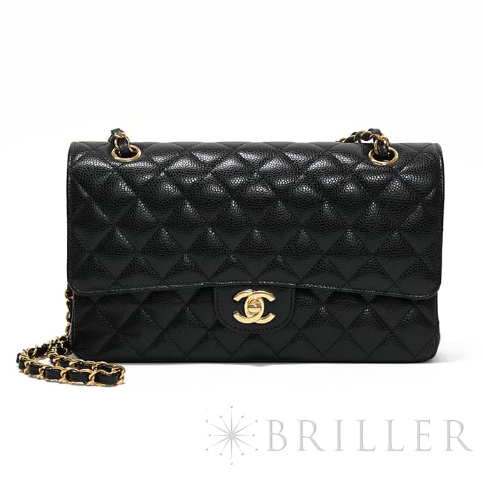 11.12 クラシック ハンドバッグは、1955年に発表された初代モデル「2.55」を1983年に再デザインした伝統的なモデルです。ふっくらとしたキルティングが特徴の「マトラッセ」は、多くのシャネルのバッグのディテールに起用されています。バッグの前面には、今ではアイコンとなっている2つのCを掛け合わせた「ココマーク」をあしらったデザインが施されています。チェーンストラップは、ダブルで持ち手を短くしたり、シングルで肩掛けにしたり、スタイルに応じて長さを調節することができます。素材には傷や汚れに強いグレインド カーフスキンを使用。キルティング加工を施すことで型崩れしにくくなり、リッチな質感だけでなく、デイリーユースしやすい実用性をも実現しています。代表作にしてシャネルの世界観を存分に味わえるバッグです。