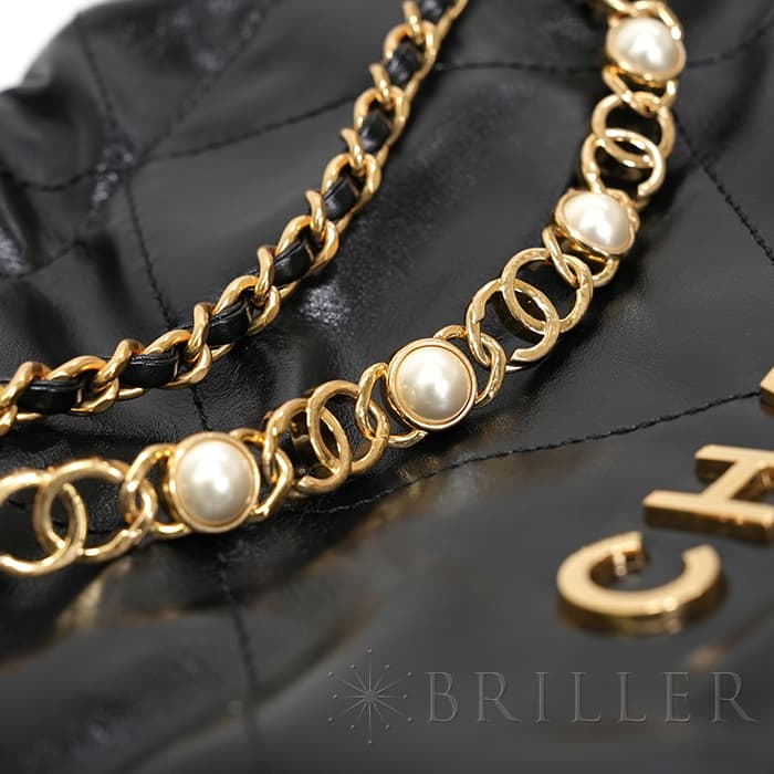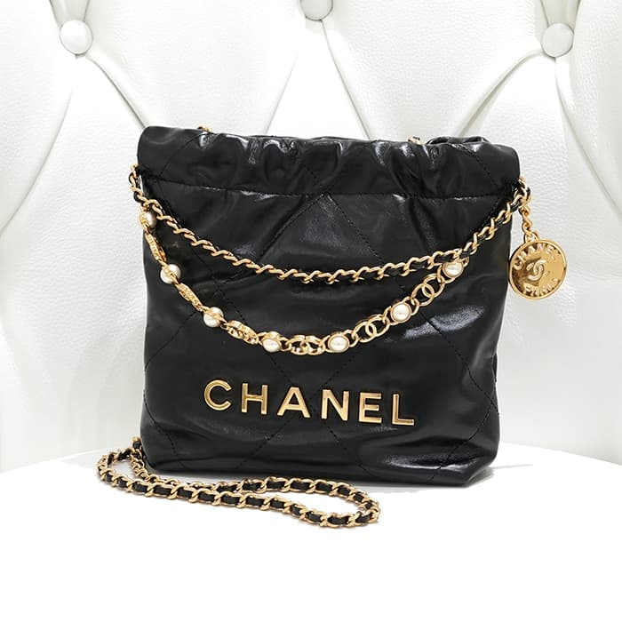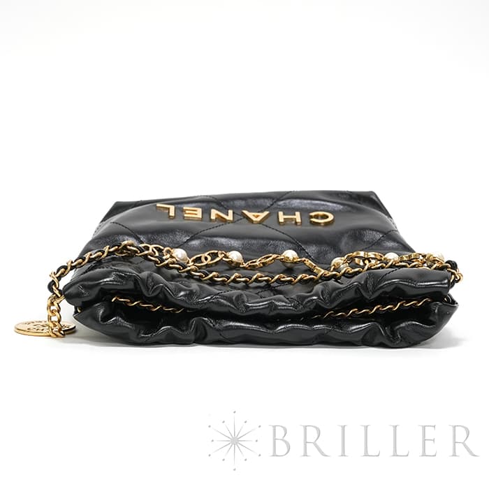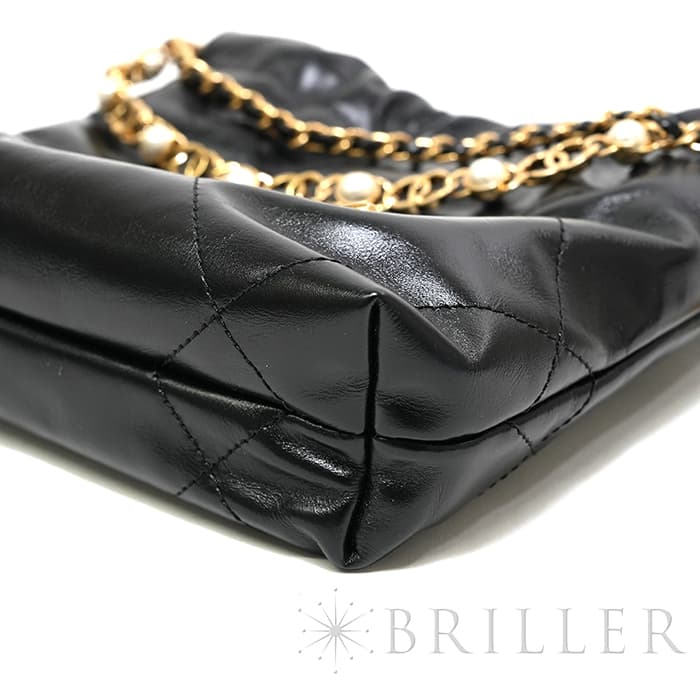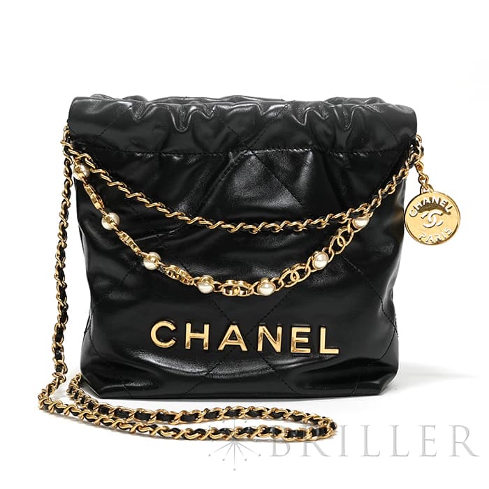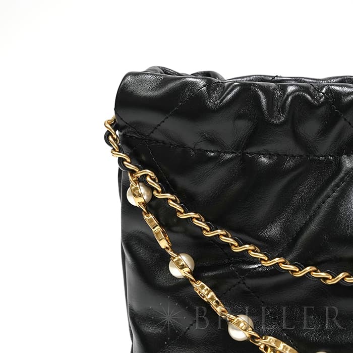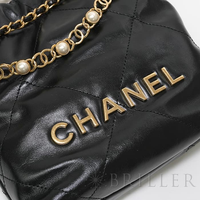 シャネル ミニ ハンドバッグ AS3980 B17401 94305 シャイニーカーフスキン CHANEL シャネルの代表するバッグとなった「22」シリーズのミニバッグ。つやが特徴的なシャイニーカーフを使用しています。大き目のキルティングにコスチュームパールと大胆な「CHANEL」のロゴが非常にアイコニックでシャネルのバッグの中では非常にカジュアルな印象が感じられます。レザーとチェーンの2種類のストラップが今までのシャネルにないスポーティーな雰囲気を醸し出しています。華やかさもあり、シャネルが現代的なデザインで新たな世界観を表現した、日常つがいしやすいカジュアルなバッグです。