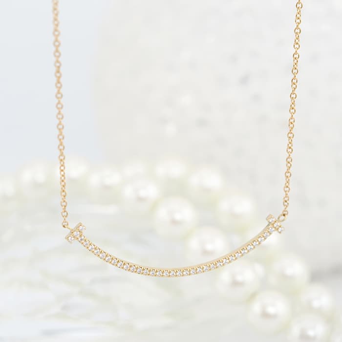 世界5大ジュエラーの1つであるティファニーは、鮮やかなティファニーブルーと呼ばれるブランドカラーで、ジュエリー好きでなくても知らない人がいないほどの知名度を誇るアメリカのブランドです。 普遍的な幸せの象徴である笑顔を表現するティファニーT スマイルは大人可愛いアイテムとして人気。ダイヤモンドがセッティングされたスモールサイズは首元でさりげなく輝き、コーディネートをフェミニンな雰囲気に仕上げてくれます。