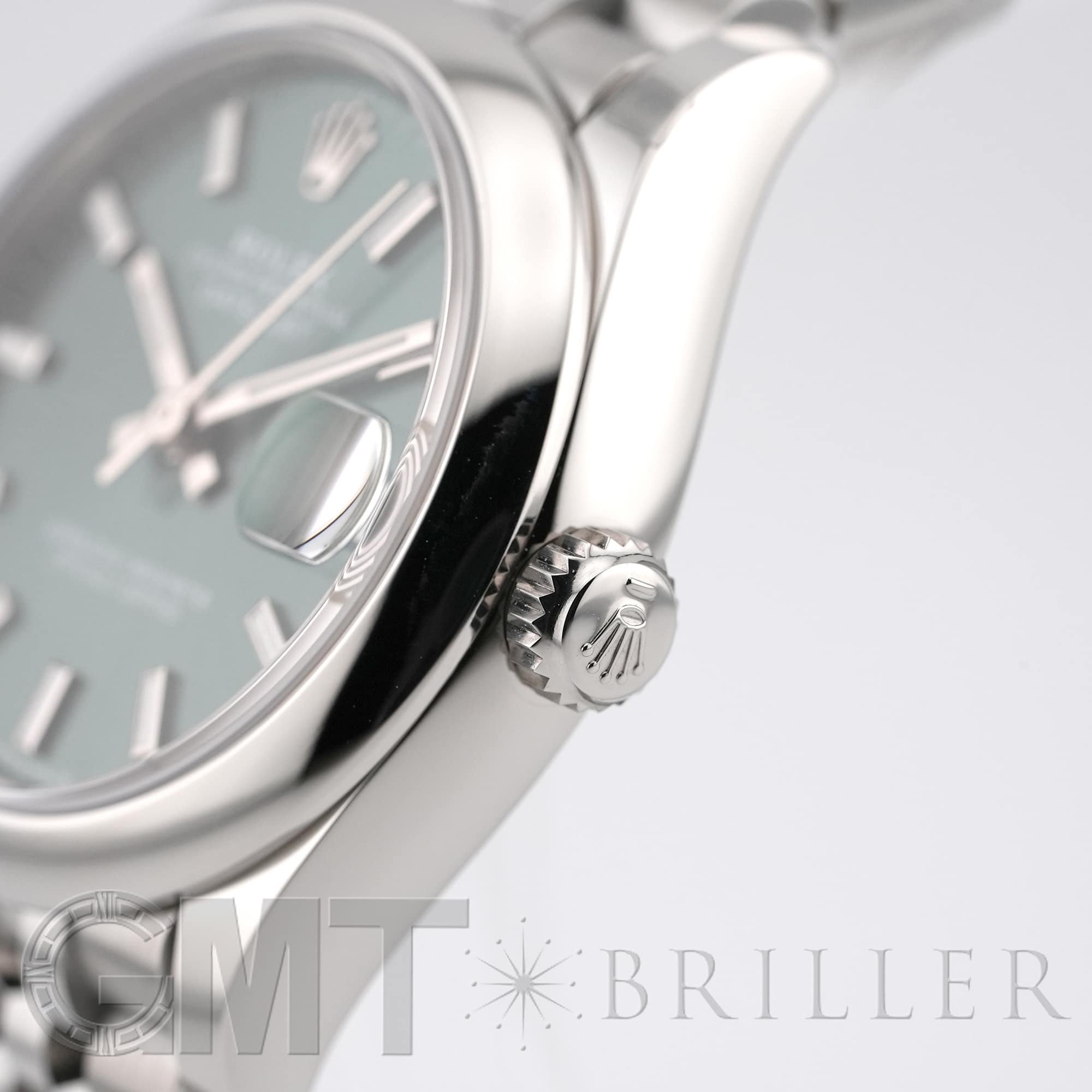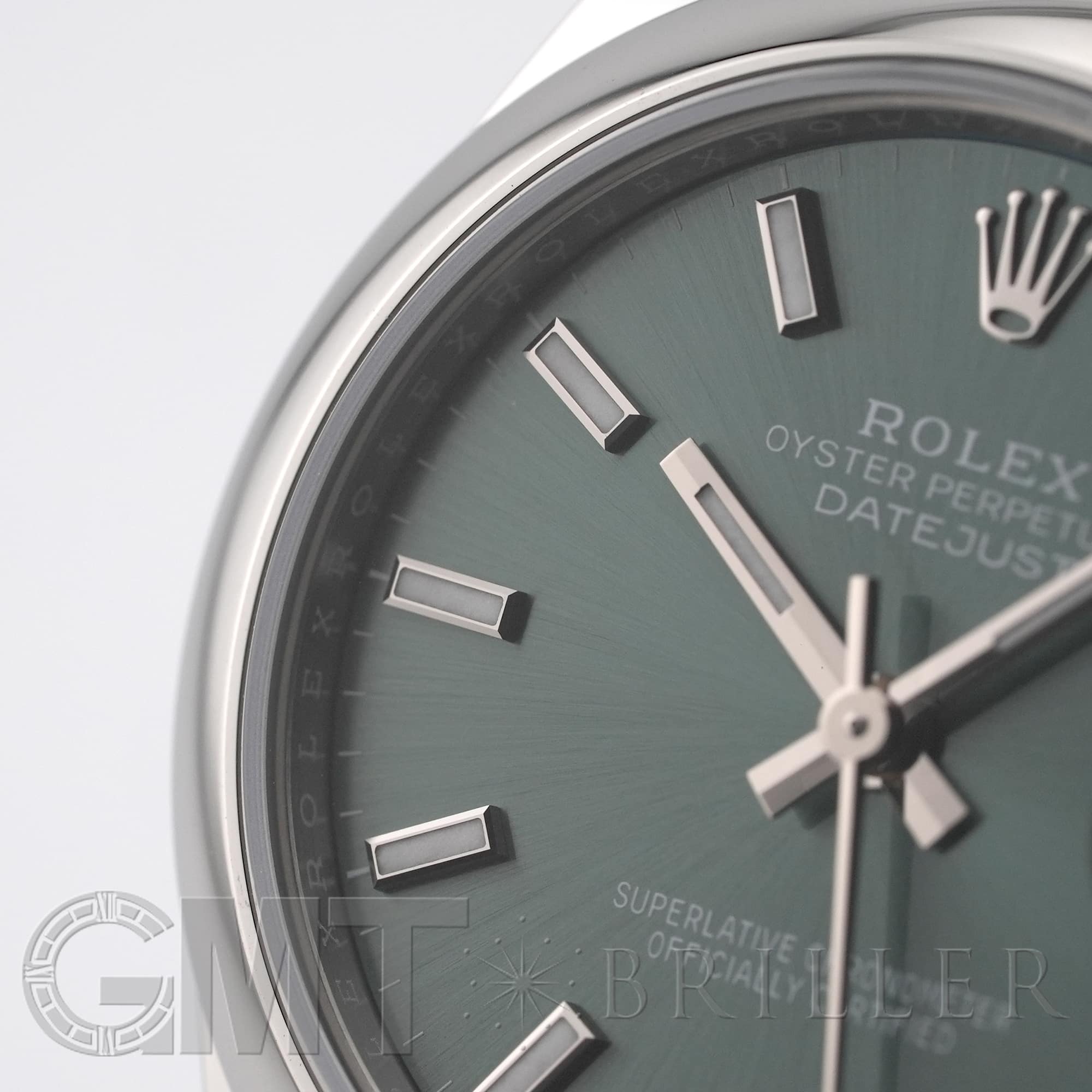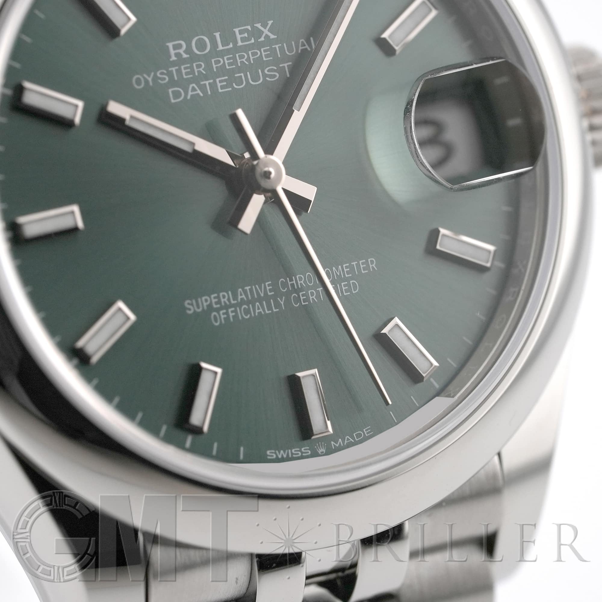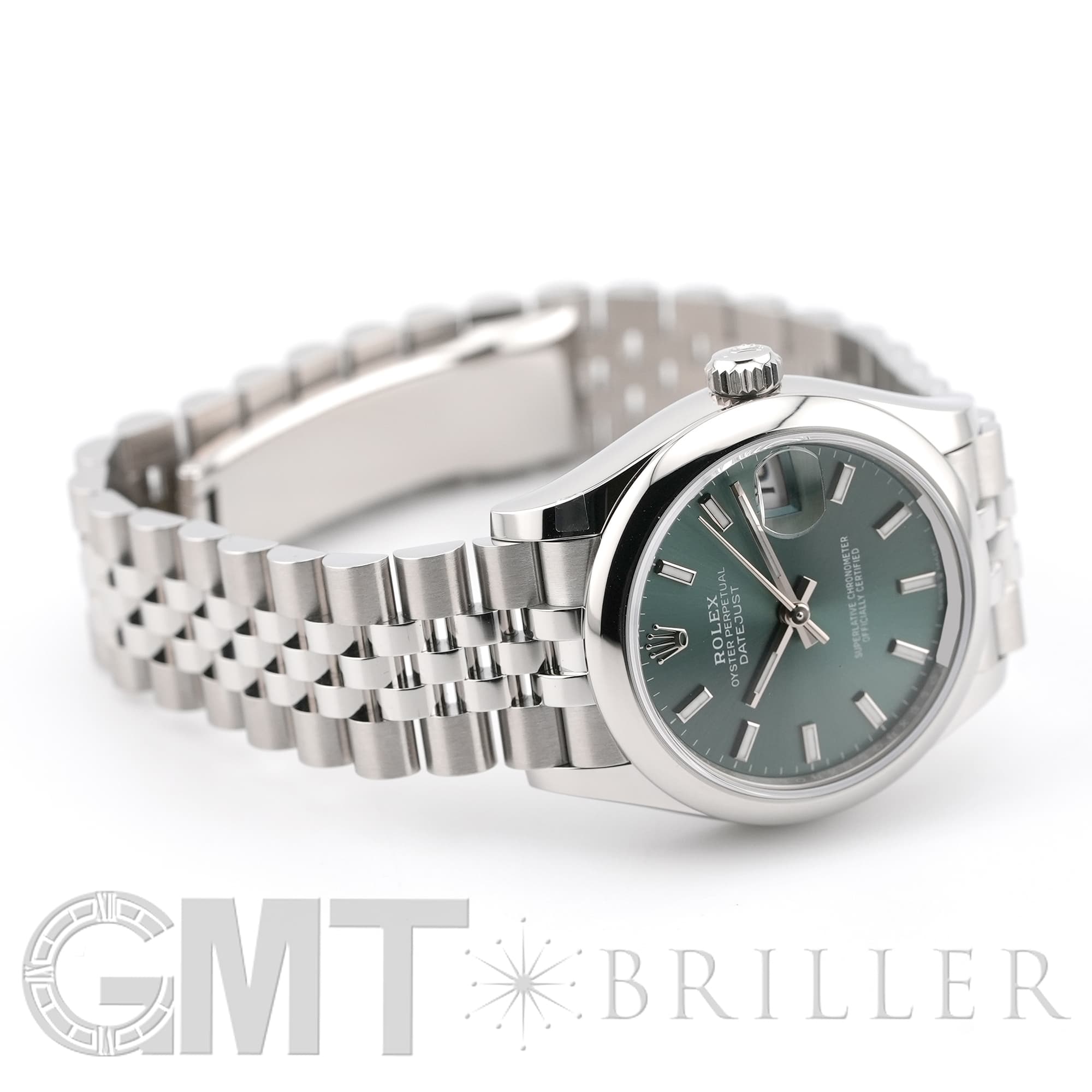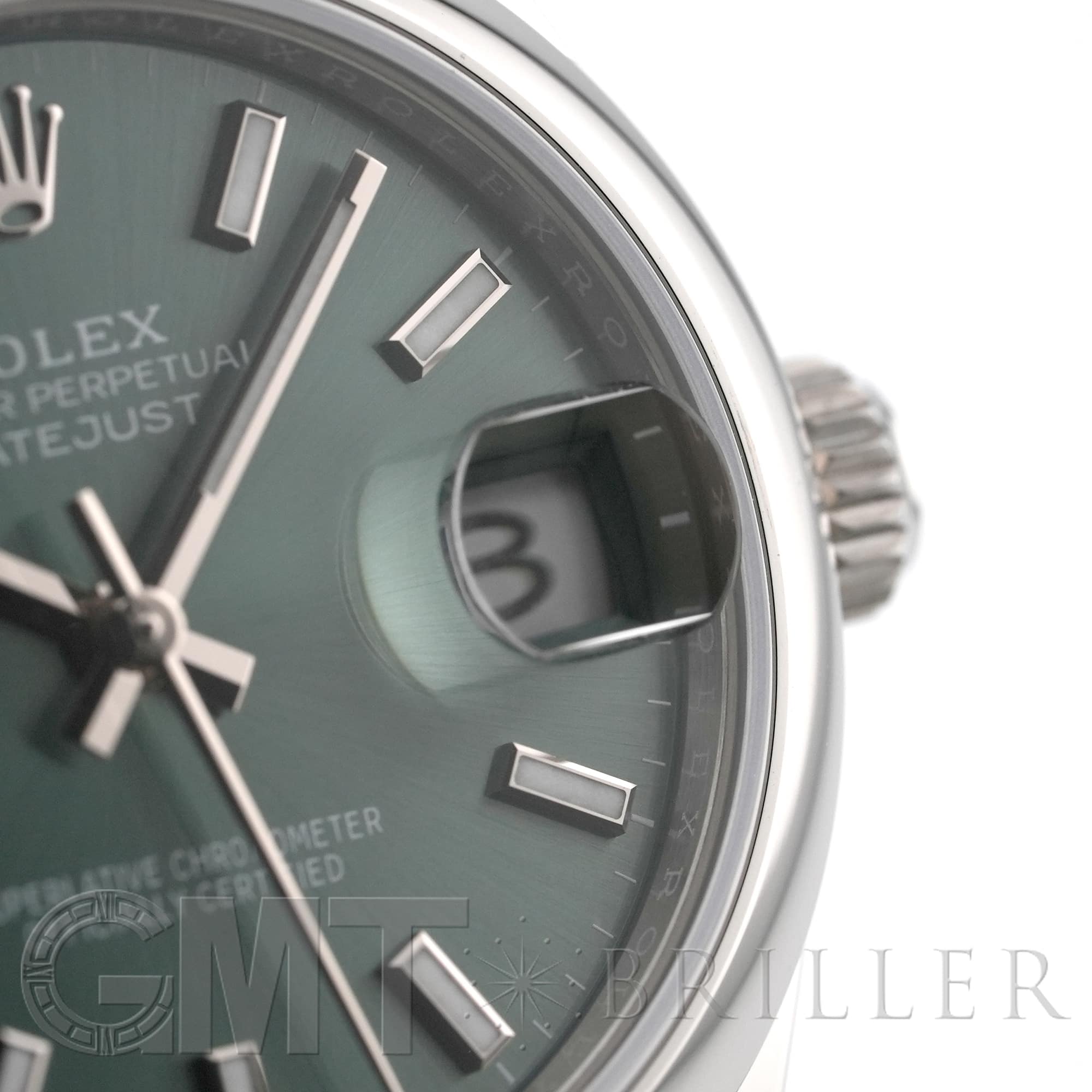 こちらのモデルは2020年に誕生した31mmケースのデイトジャスト「278240」完全自社製造の自動巻き「Cal.2236」を搭載し、カレンダー操作の禁止時間帯がないムーブメントです。落ち着いたミントグリーンのダイアルにバーインデックスとジュビリーブレスレットを組み合わせており、マニッシュな雰囲気でオフィスでも活躍するモデルです。