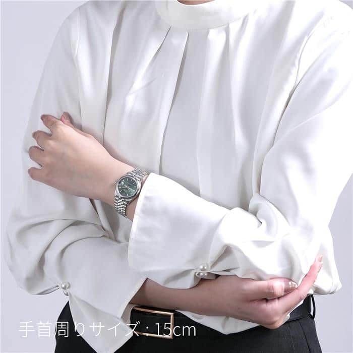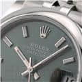 こちらのモデルは2020年に誕生した31mmケースのデイトジャスト「278240」完全自社製造の自動巻き「Cal.2236」を搭載し、カレンダー操作の禁止時間帯がないムーブメントです。落ち着いたミントグリーンのダイアルにバーインデックスとジュビリーブレスレットを組み合わせており、マニッシュな雰囲気でオフィスでも活躍するモデルです。