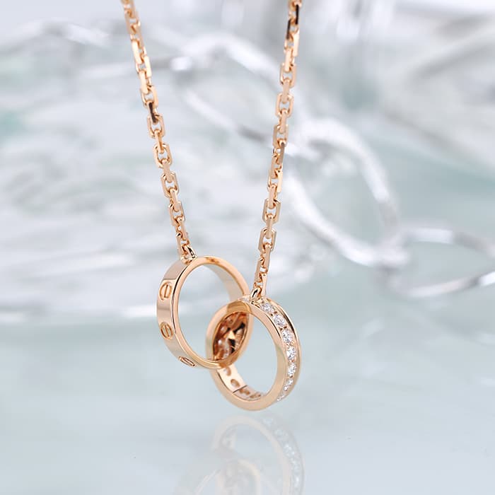 世界五大ジュエラーとして名を馳せる、宝石商の王「カルティエ」。 1970年代にニューヨークで生まれた「LOVE」コレクションは、ビスのモチーフが特徴的なコレクションです。 2つの重なり合ったリングが印象的で、肌なじみのいい華やかなピンクゴールドとダイヤモンドが合わさりエレガントでシックな雰囲気が女性らしさを際立たせています。 細身の洗練されたチェーンはシーンを問わず、あらゆる場面でご愛用いただけます。