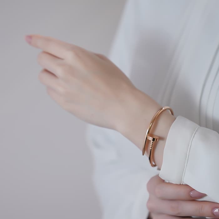 フランスで誕生し、独創的なデザインや技術力の高さから圧倒的な支持を受けるブランド「カルティエ」。1本の釘から誕生したジュエリー「ジュスト アンクル」のブレスレットは、個性的かつ上品なデザインが人気のジュエリーです。シンプルなデザインながらも、力強さと美しさを感じさせてくれます。男女問わず使いやすいデザインで、同じシリーズのネックレスやリングと組み合わせたり、ペアでお揃いを身につけて楽しむ事もできます。
