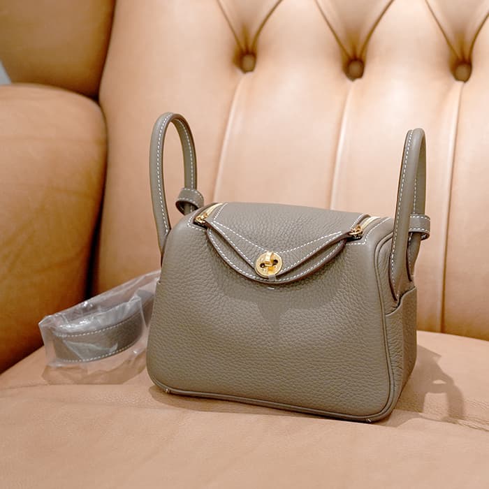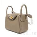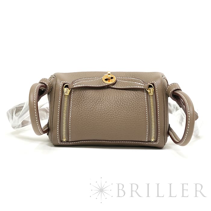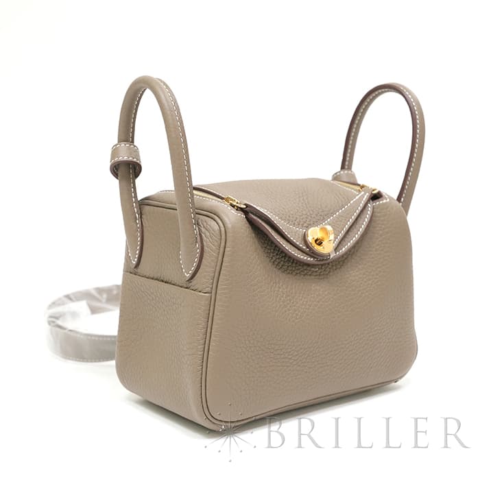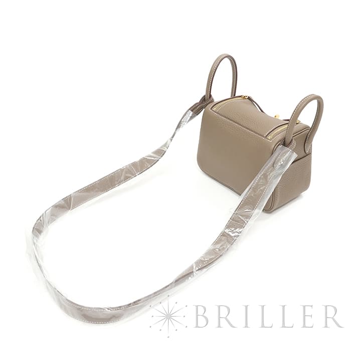 エルメス リンディ ミニ トリヨンクレマンス エトゥープ ゴールド金具 HERMES2007年に誕生したリンディは、エルメスのバッグの中でも比較的新しいコレクションです。 発売から間もなく話題となり、たちまち入手困難なバッグの1つとなりました。こちらのミニサイズは2019年に誕生しミニバッグの流行とともに、そのサイズ感が非常に可愛らしく人気を博しています。マチが広く設計されているため、ミニウォレットやキーケース、スマートフォンを収納しても余裕たっぷり。必要なアイテムをすっきりまとめられるのが魅力です。ショルダーが他の大きさよりも長めに作られているので斜め掛けでご使用頂くことができ、トリヨンクレマンスの柔らかい質感は、体にきちんとフィットしてくれます。ファーストエルメスとしても人気の高いカラーの「エトゥープ」が、上品で大人らしい雰囲気を演出します。W刻印(2024年)の新品のお品物です。