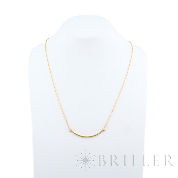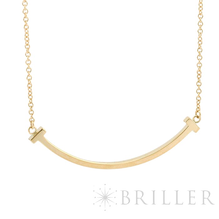 ティファニー T スマイル ペンダント ネックレスス モール イエローゴールド 6001167 TIFFANY & Co. 世界5大ジュエラーの1つであるティファニーは、鮮やかなティファニーブルーと呼ばれるブランドカラーで、ジュエリー好きでなくても知らない人がいないほどの知名度を誇るアメリカのブランドです。その中でも人気を誇るティファニーの「T スマイル ペンダント」はは、ティファニーの頭文字「T」をスマイルの口元に見立てたデザインが特徴で 大人可愛いアイテムとして人気です。こちらの個体は、程よいスモールサイズで、イエローゴールドは顔周りを華やかに見せ、コーディネートを上品な印象に仕上げてくれます。