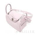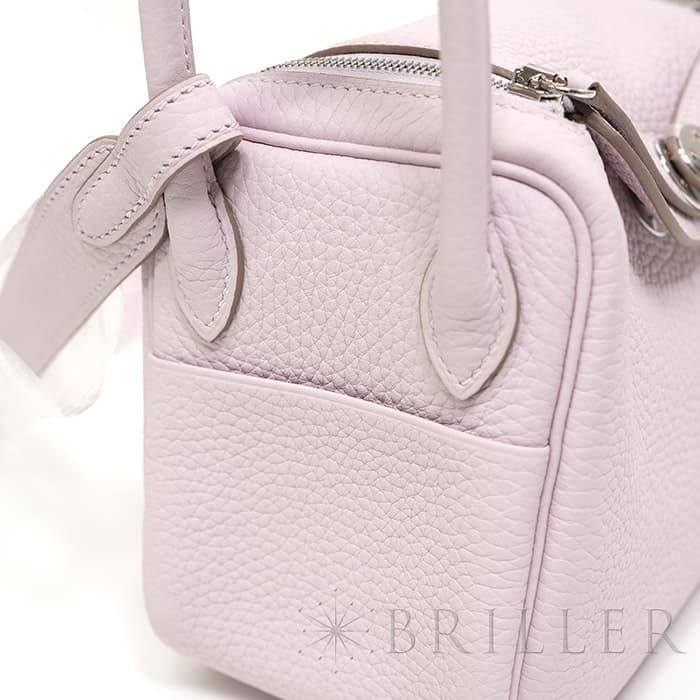 エルメス リンディ ミニ ヴェルソ トリヨンクレマンス モーヴペール グリペール シルバー金具 HERMES 2007年に誕生したリンディは、エルメスのバッグの中でも比較的新しいコレクションです。 発売から間もなく話題となり、たちまち入手困難なバッグの1つとなりました。 こちらのミニサイズは2019年に誕生しミニバッグの流行とともに、そのサイズ感が非常に可愛らしく人気を博しています。マチが広く設計されているため、ミニウォレットやキーケース、スマートフォンを収納しても余裕たっぷり。必要なアイテムをすっきりまとめられるのが魅力です。ヴェルソは外側と内側で違う色を使用した特別感が味わえるバッグです。こちらは外側に外側は可憐で軽やかなグレイッシュピンクの「モーヴペール」、内側には真珠を彷彿とさせる美しい艶感が魅力のグレーカラー「グリぺール」の組み合わせでです。 ショルダーが他の大きさよりも長めに作られているので斜め掛けでご使用いただくことができ、トリヨンクレマンスの柔らかい質感は、体にきちんとフィットしてくれます。 トータルコーディネートとしても合わせやすいブラックは、ちょっとしたお出かけや、旅先のバッグとしてもお勧めです。 チャームやツイリーを合わせるなど、王道だからこそのあらゆる組み合わせを楽しんでいただけます。 W刻印(2024年)の新品のお品物です。