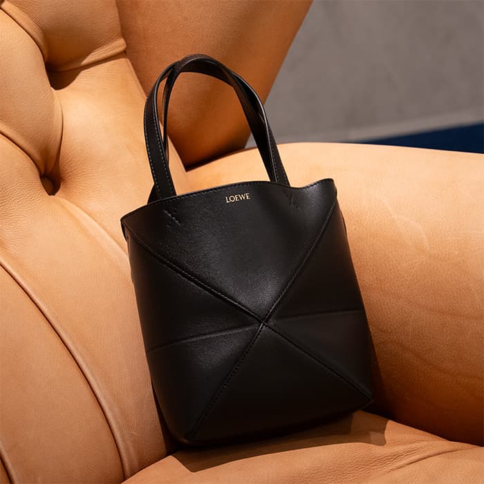 1846年にスペイン・マドリードで創業したLOEWE(ロエベ)は、卓越したレザークラフトを誇るラグジュアリーブランドです。王室御用達の歴史を持ち、伝統技術と現代的な感性を融合させた洗練されたデザインが魅力です。ブランドを象徴する“パズル”シリーズは、2015年にクリエイティブ・ディレクターのジョナサン・アンダーソンによって発表された、LOEWEの新時代を象徴するシリーズです。 折り紙のように立体的に構築した特徴的なカッティングは全て計算され尽くしており、立体的な幾何学構造と卓越したレザー技術が融合したデザインは、見る角度によって表情を変え、まさに“持つアートピース”です。 折りたたみ可能なフォルドのトートバッグは、シャイニーカーフスキンは艶やかでしなやかな質感。都会的で洗練された雰囲気を演出します。ミニサイズは、ちょっとしたお出かけや街歩きにちょうどいいサイズ感で、都会的なスタイルにぴったり。コンパクトながらマチもあり、サブバッグとしても活躍します。
