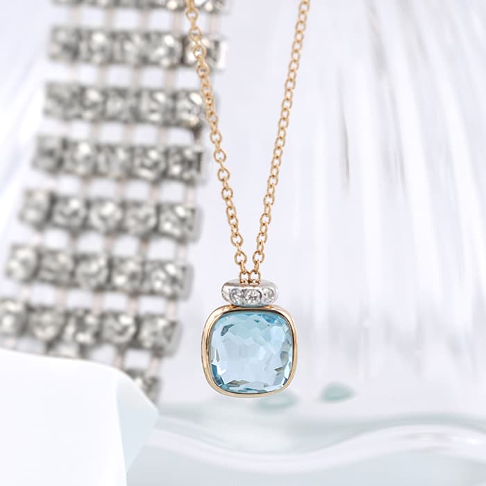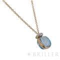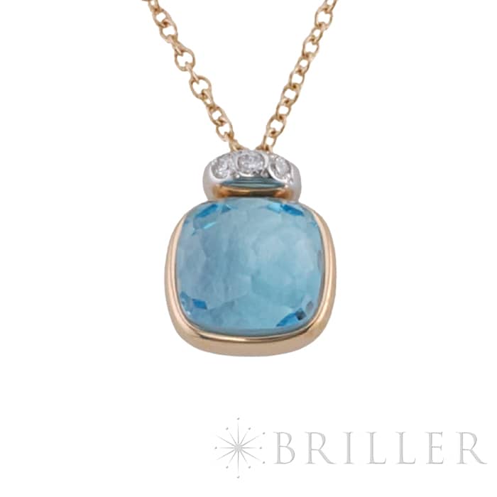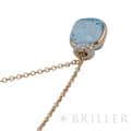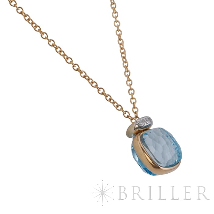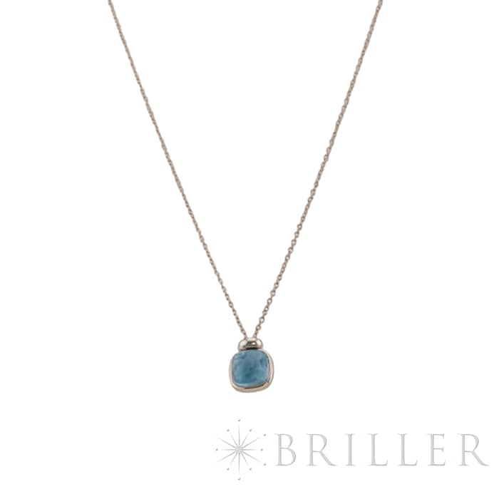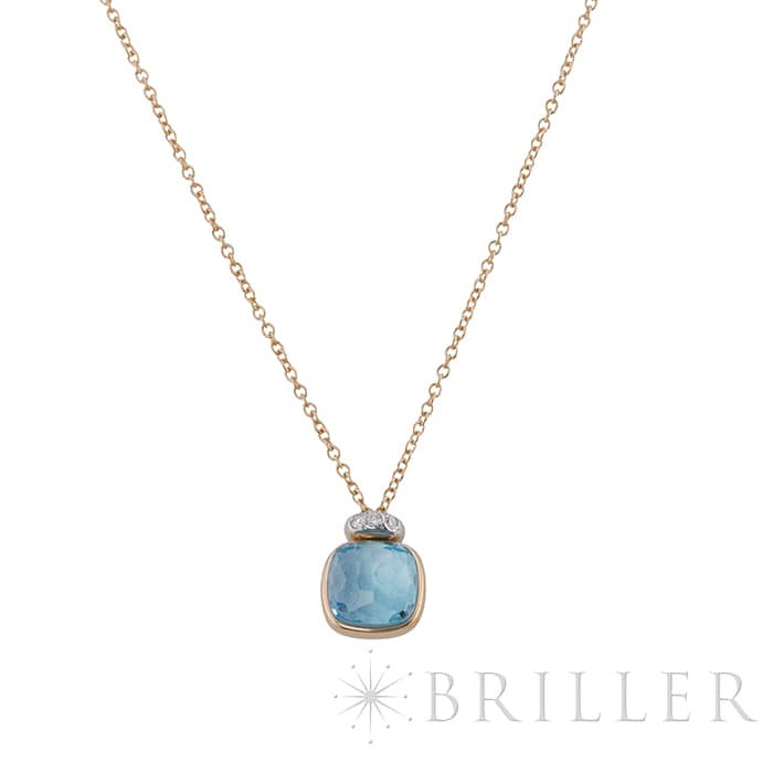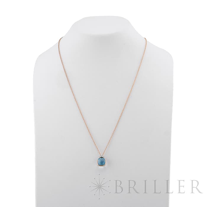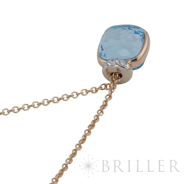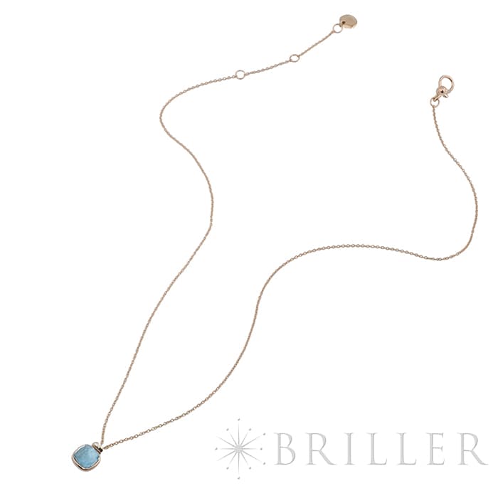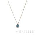 ポメラート ヌード ミニ ペンダント ネックレス ローズゴールド ホワイトゴールド スカイブルートパーズ PCC5020_O6WHR_DB0YY POMELLATO1967年、ミラノで誕生したジュエリーブランド「ポメラート(POMELLATO)」。ブランドを象徴するアイコンジュエリー〈ヌード〉の独自のストーンカッティングを、より小ぶりで繊細なサイズ感に落とし込んだのが〈ヌード ミニ〉です。透明感あふれるスカイブルートパーズを、ワイヤー状のゴールドで優美に囲むデザインは、ストーンの美しさを最大限に引き立てます。さらに、メインストーン上部には0.02カラットのダイヤモンドを3粒セッティングし、可憐さの中にラグジュアリーな輝きを添えています。繊細ながらも存在感のある、現代的でエレガントなペンダントネックレスです。チェーン:全長42cm/アジャスター38cm