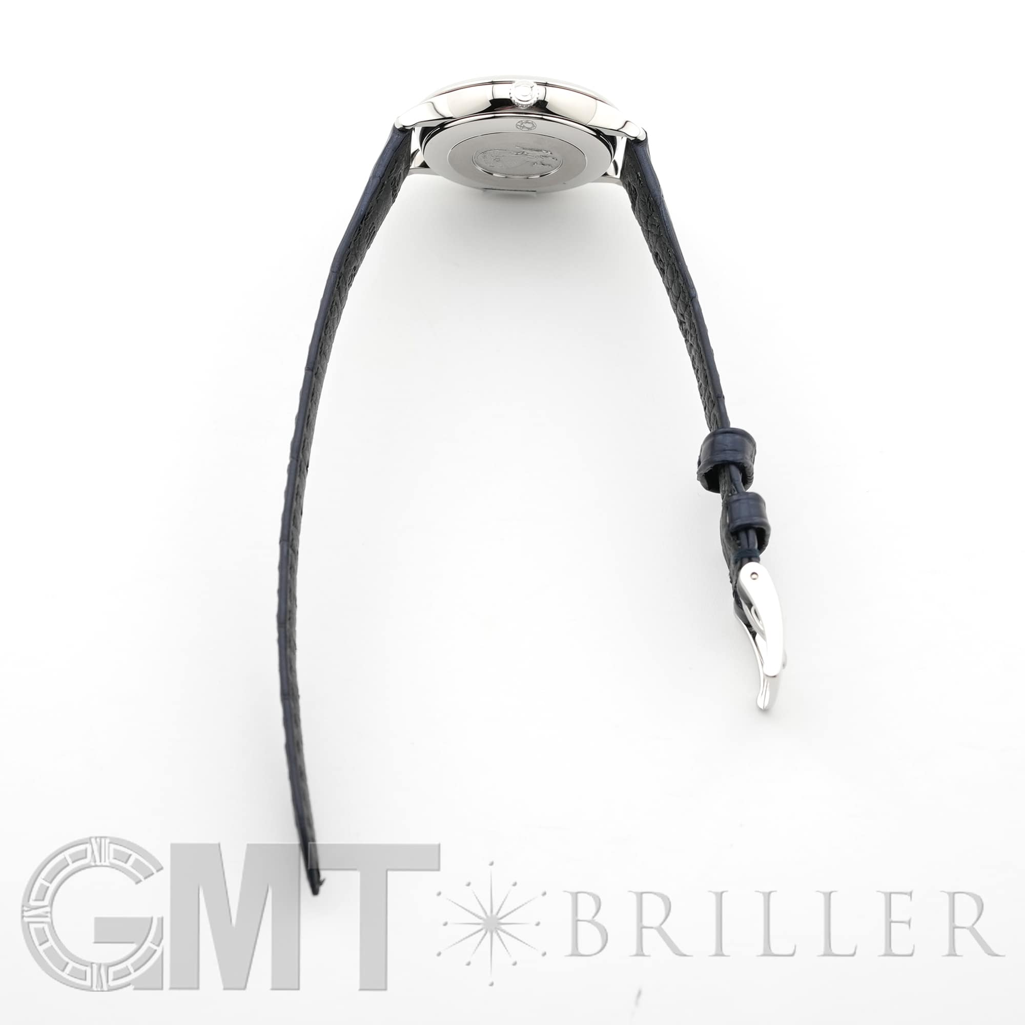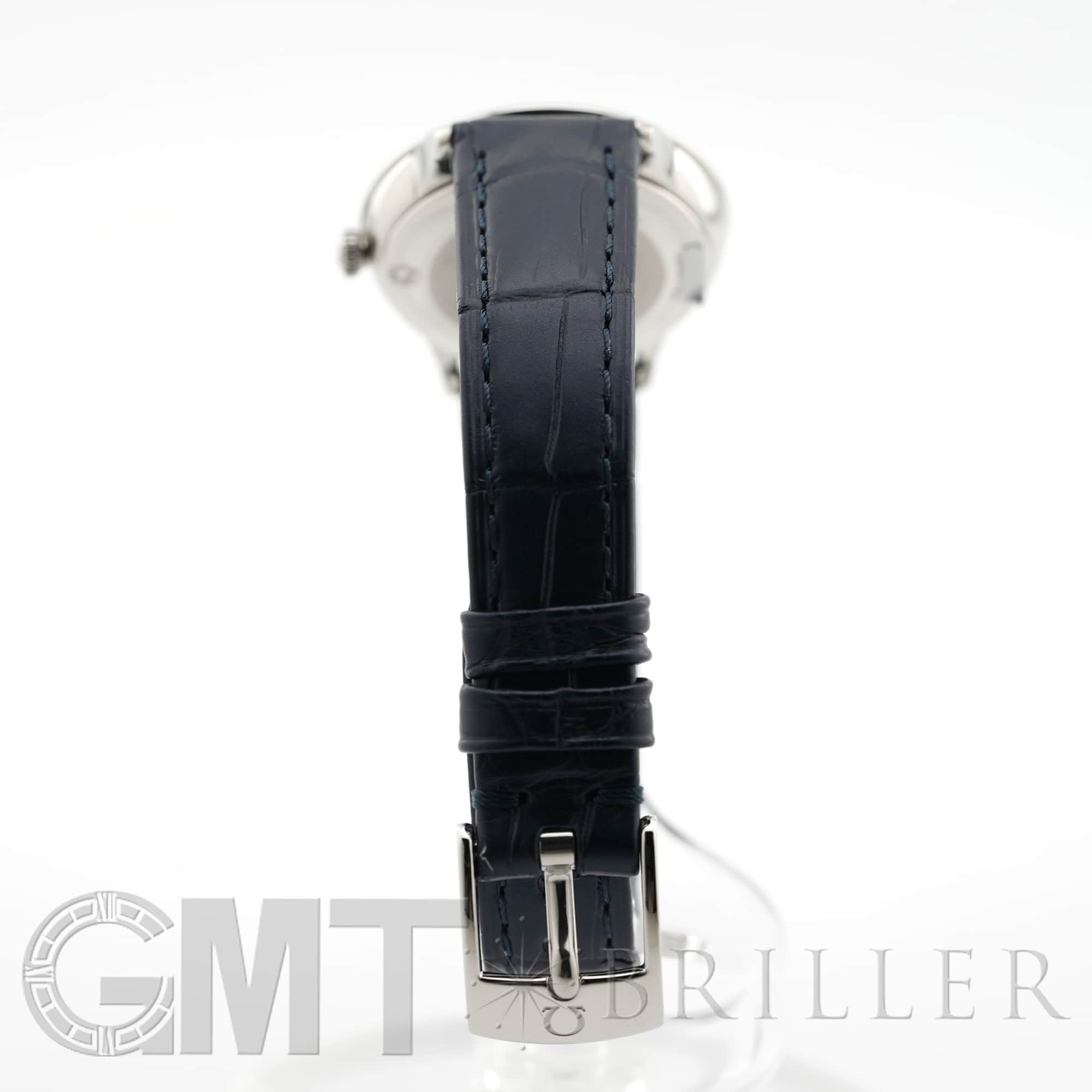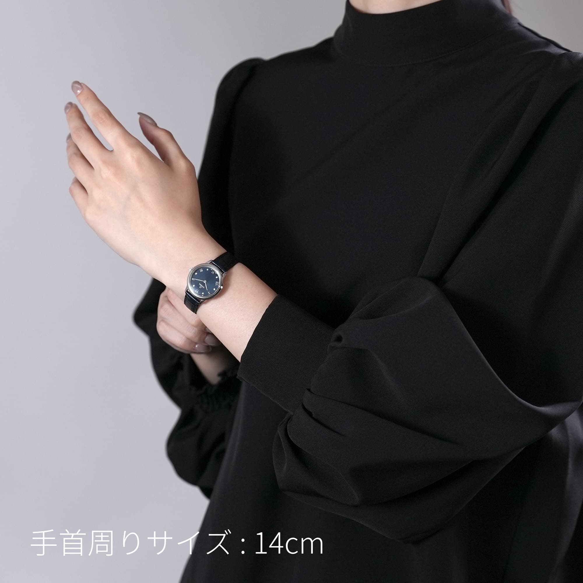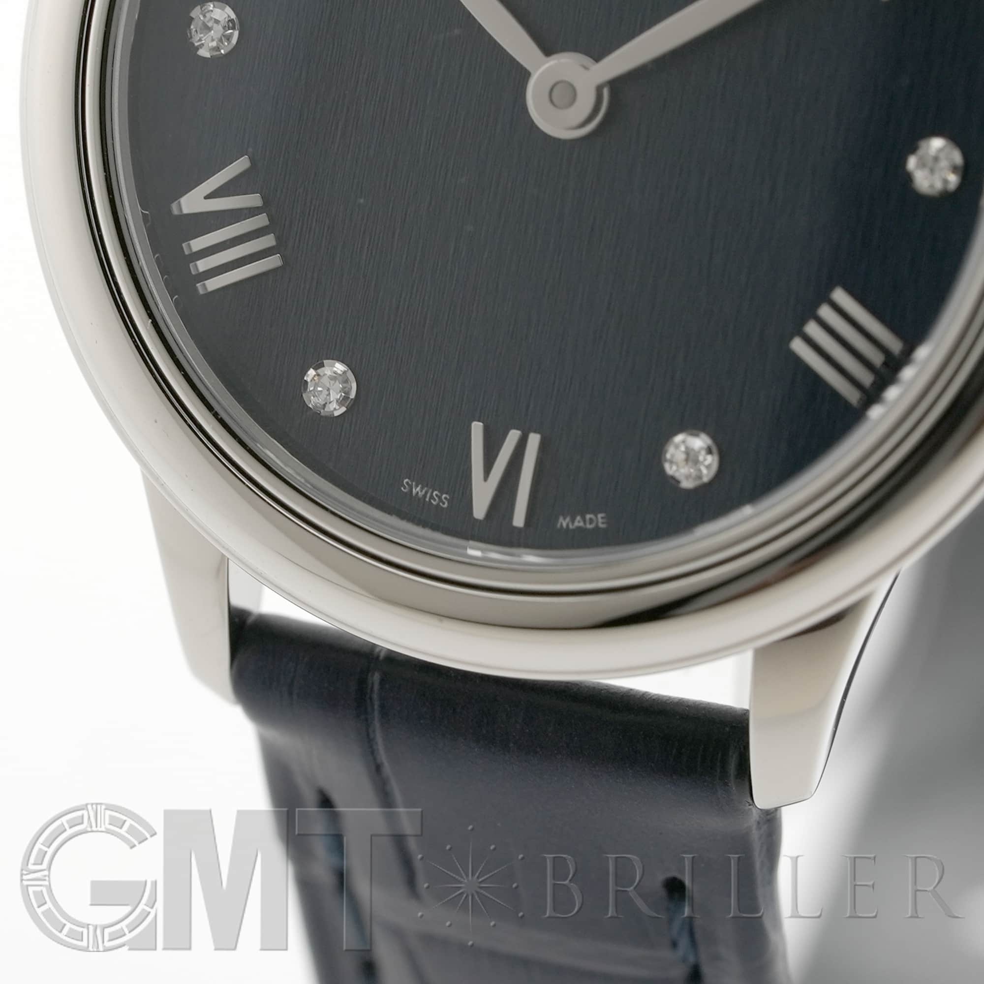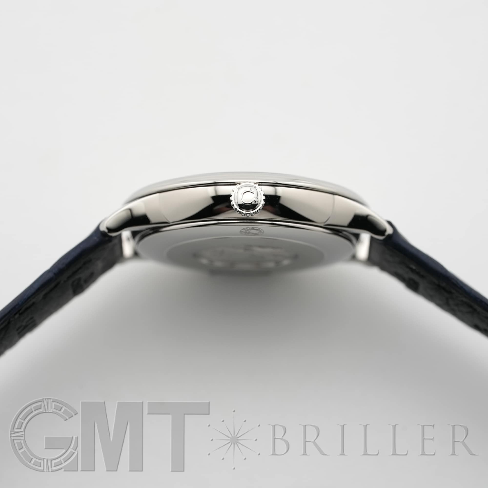 フランス語で「街角」を意味する“デ・ヴィル”は、オメガのコレクションの中でも特にドレッシーでエレガントなシリーズとして知られています。その洗練されたデザインは、日常の装いからフォーマルなシーンまで幅広く対応し、多くのファンに長く愛されてきました。 本モデルは、ランダムなバーティカルパターンが型押しされたサンブラッシュ仕上げのPVDブルーの文字盤を採用。ローマ数字と6石のダイヤモンドを配したインデックスで、華美すぎない上品な輝きを添えています。繊細なディテールと絶妙な色のコントラストが、さりげない高級感を演出します。27.5mmのケースサイズは、女性の腕元にバランスよく収まり、快適な着け心地を実現。オメガの精緻な技術と美しい意匠が融合した一本は、ご自身へのご褒美はもちろん、大切な方への贈り物にもふさわしいモデルです。