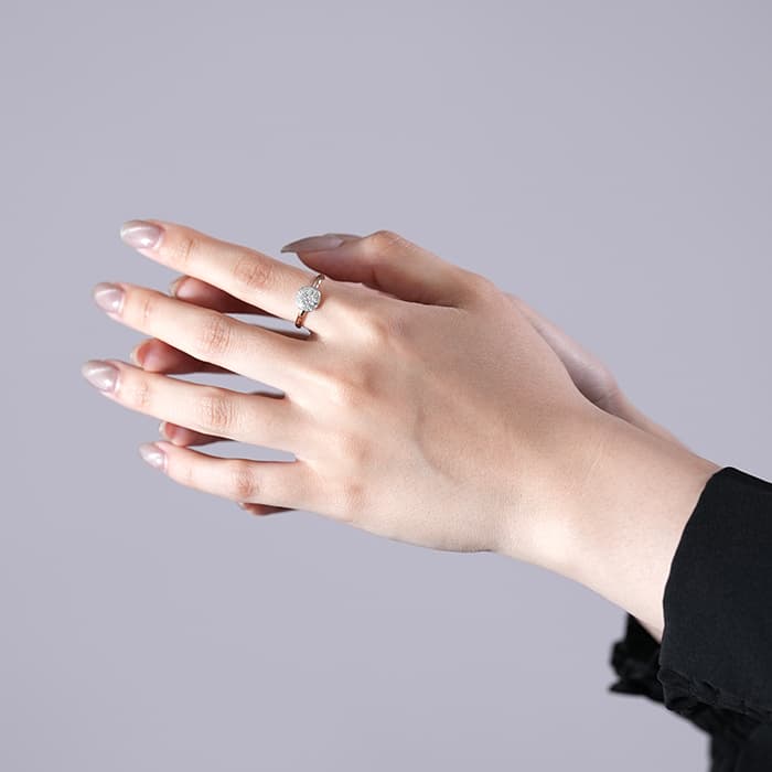 1967年にミラノで誕生したポメラートが手がける「サッビア」リングは、陽光に照らされた砂の輝きに着想を得たコレクションです。細いアームに贅沢に施されたパヴェダイヤモンドがキラキラと光りを反射し、手元に煌びやかな印象を与えます。なめらかな着け心地とシンプルなフォルムは、デイリーにもフォーマルにも心地よくフィットし、トレンドに左右されないタイムレスなデザインで、長く寄り添えるジュエリーです。手元を見るたびに、上品な輝きと満足感をそっと感じさせてくれるはずです。