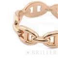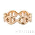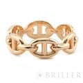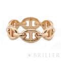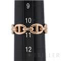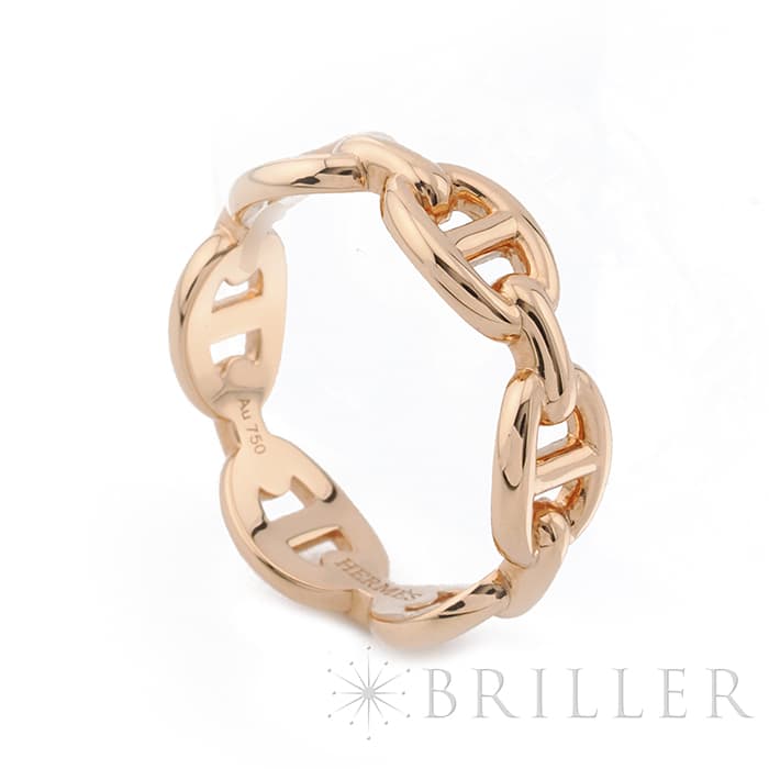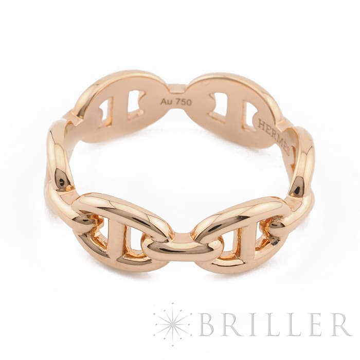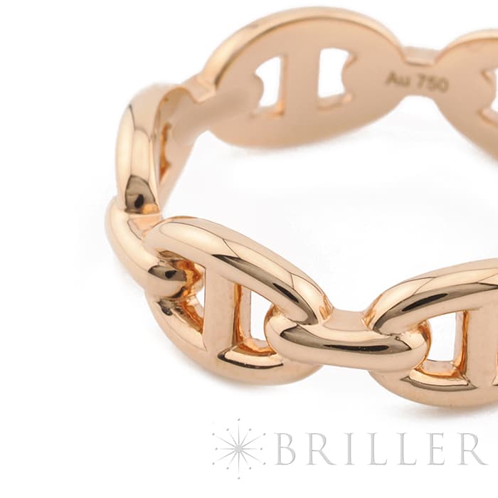 エルメス シェーヌダンクル アンシェネ リング ピンクゴールド 11号 HERMES 船の錨をモチーフにした、エルメスを象徴するようなデザインのシェーヌダンクル。1937年、ロベール・デュマはノルマンディの海岸を、船を眺めながら散策していた際に船を岸につなぎとめる錨の鎖が視線を捉えたことをきっかけにして、エルメスを代表する《シェーヌ・ダンクル》が誕生しました。男女兼用でお使いいただけるリングです。ピンクゴールは肌なじみが良く、デイリー使用にも大変おすすめです。