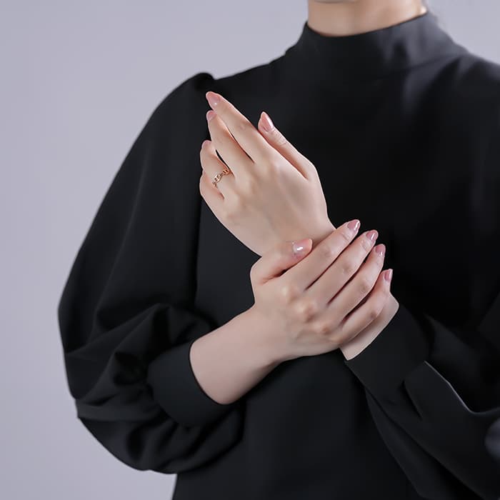 メジャーを手首に巻きつけて、手首のサイズを測ります。