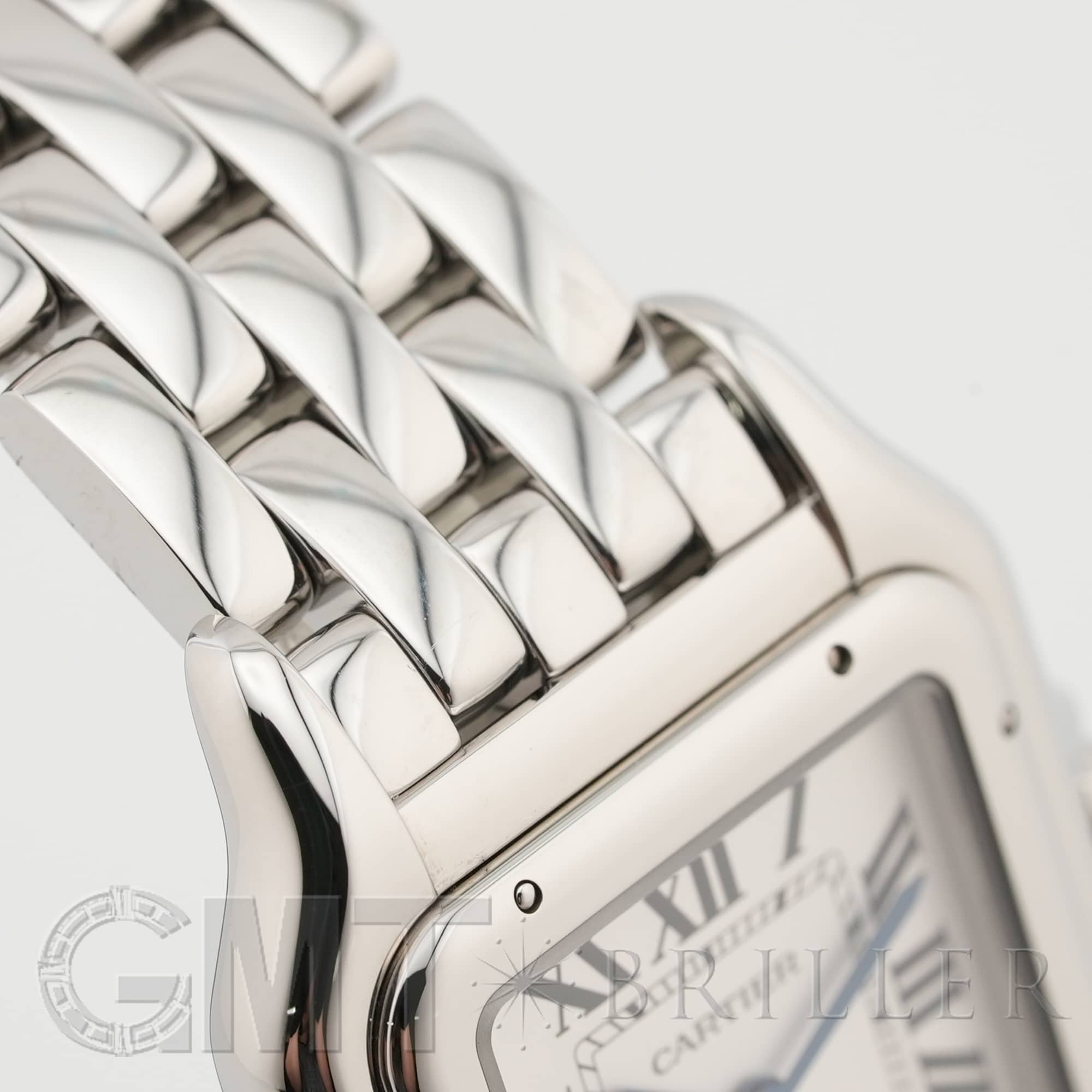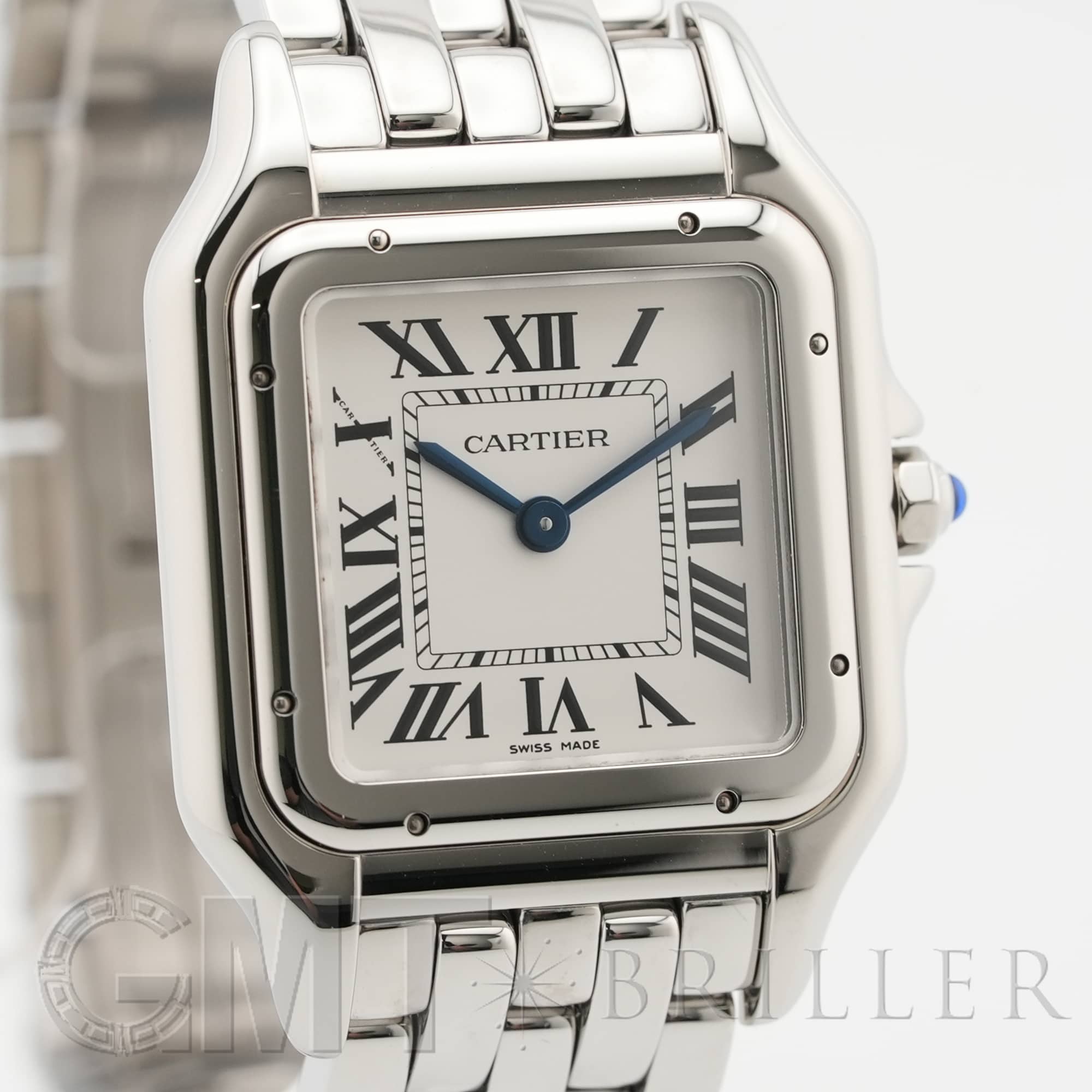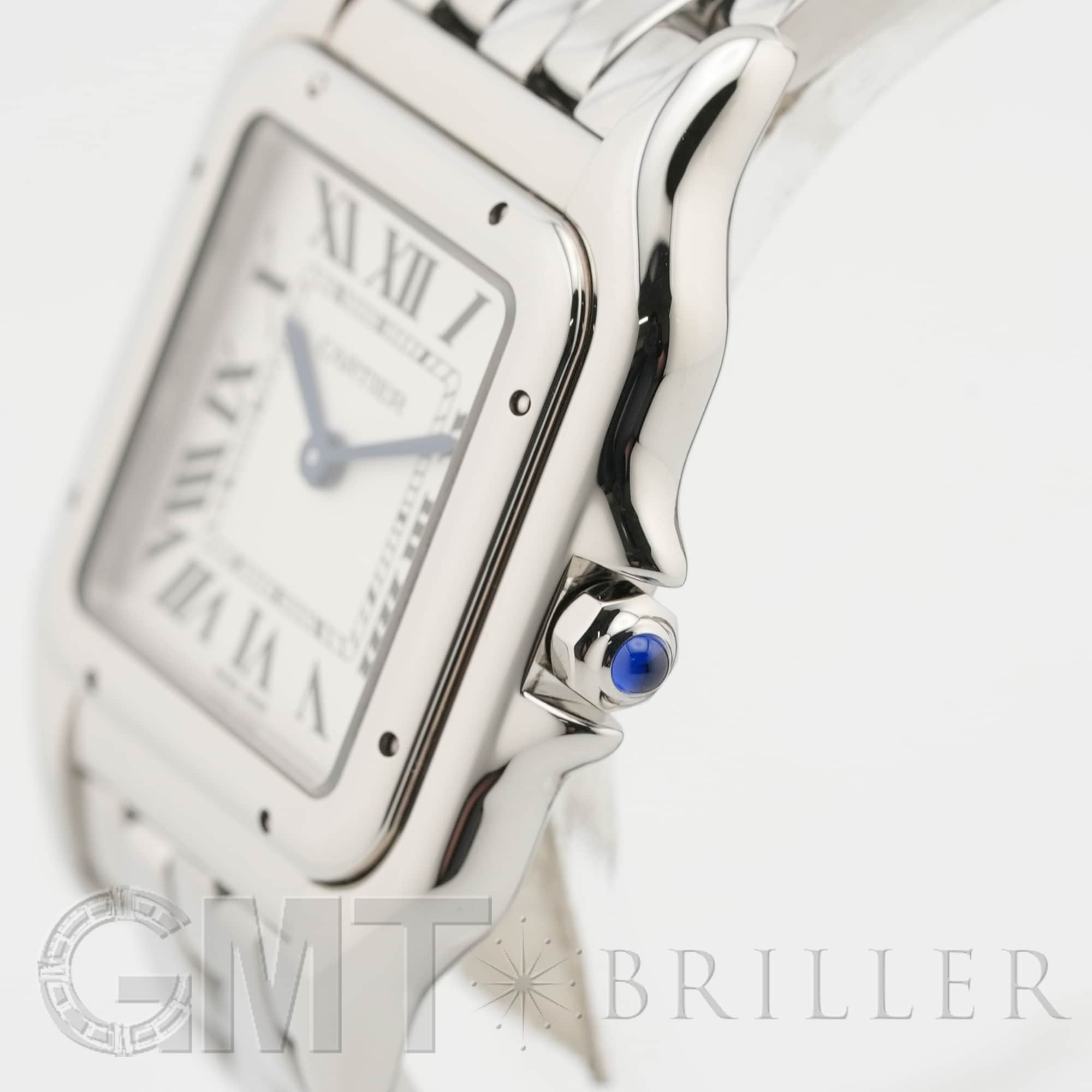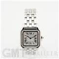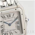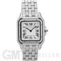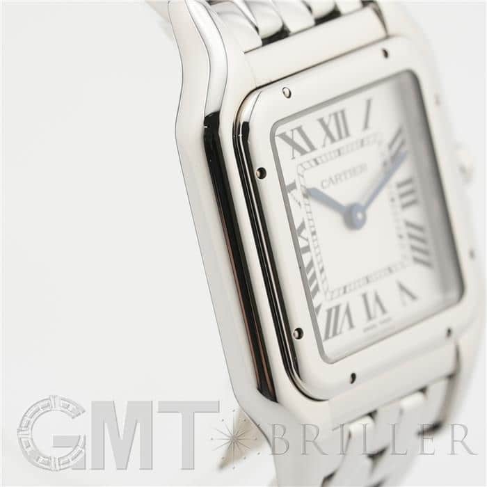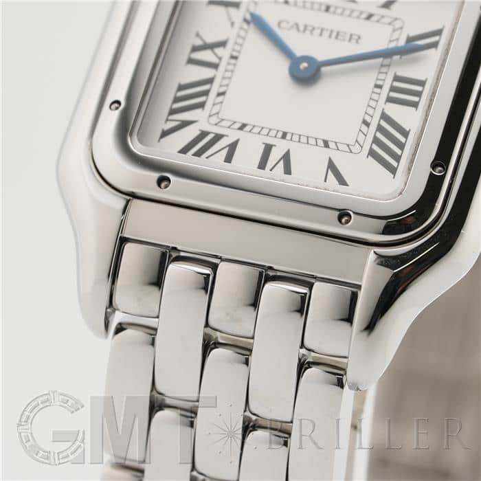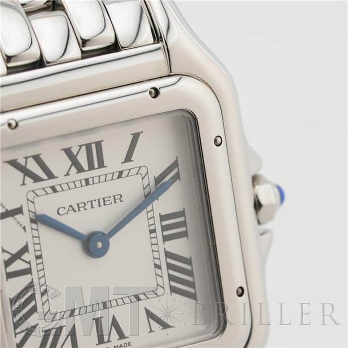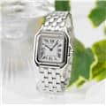 カルティエ パンテール ドゥ カルティエ MM WSPN0015 Cartier 1980年代に一世を風靡し、伝説的な人気を誇ったカルティエのアイコンウォッチ「パンテール」が復活しました。 その名はフランス語で「豹」を意味し、カルティエのジュエリーコレクションでも度々登場する象徴的なモチーフです。 特徴的なスクエアケースと流れるような5連ブレスレットは、しなやかに手首にフィットし、ジュエリーのような心地よさを実現。鏡面の輝きを持つブレスレットは光を受けて華やかにきらめき、腕元をエレガントに彩ります。 時計でありながらジュエリーとしての美しさを兼ね備えた「パンテール」は、日常から特別なシーンまで、身に着ける人を洗練された印象へと導いてくれるタイムピースです。 カルティエ時計の買取り・下取りも行っておりますので、お気軽にご相談ください。