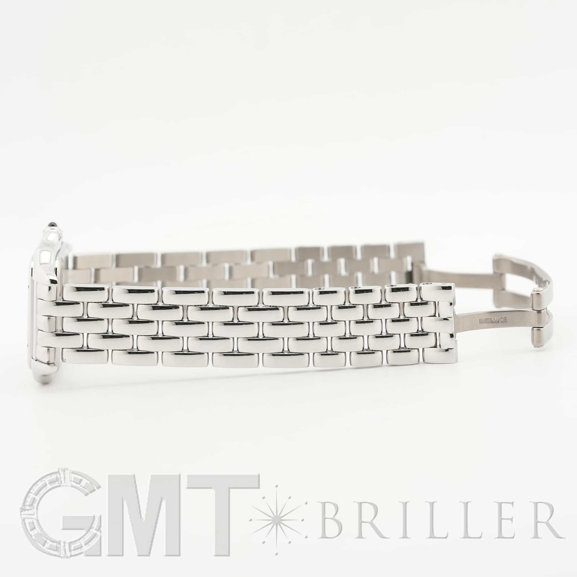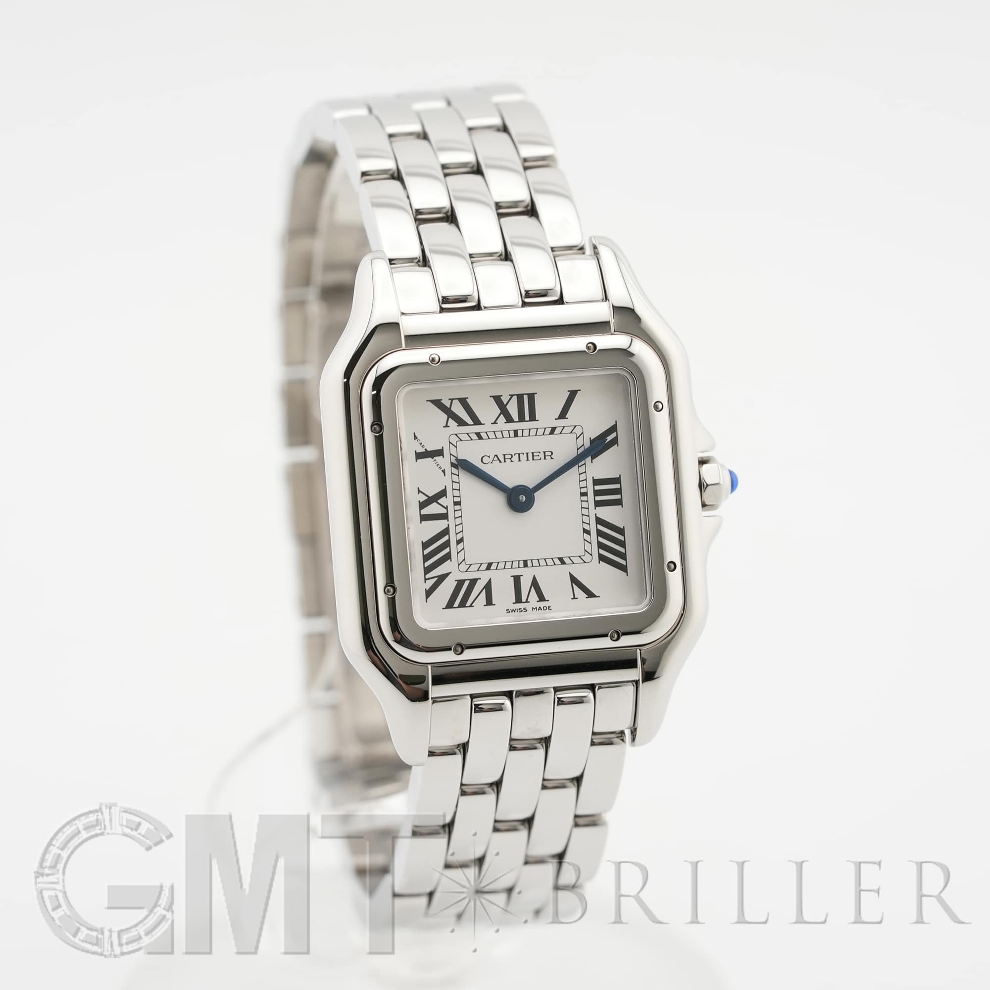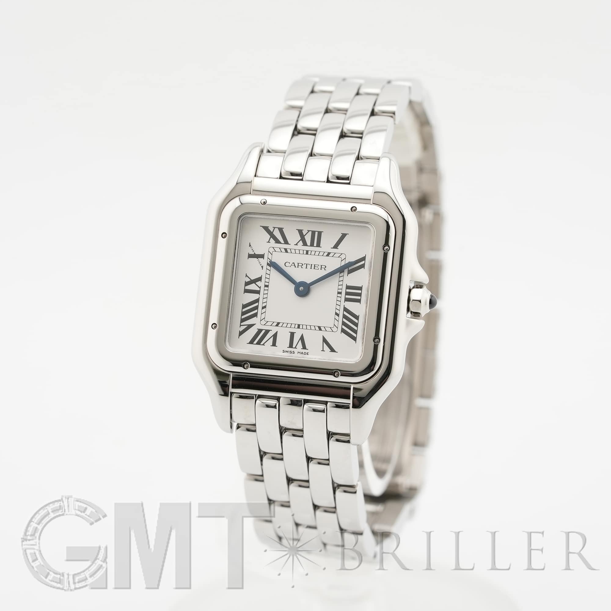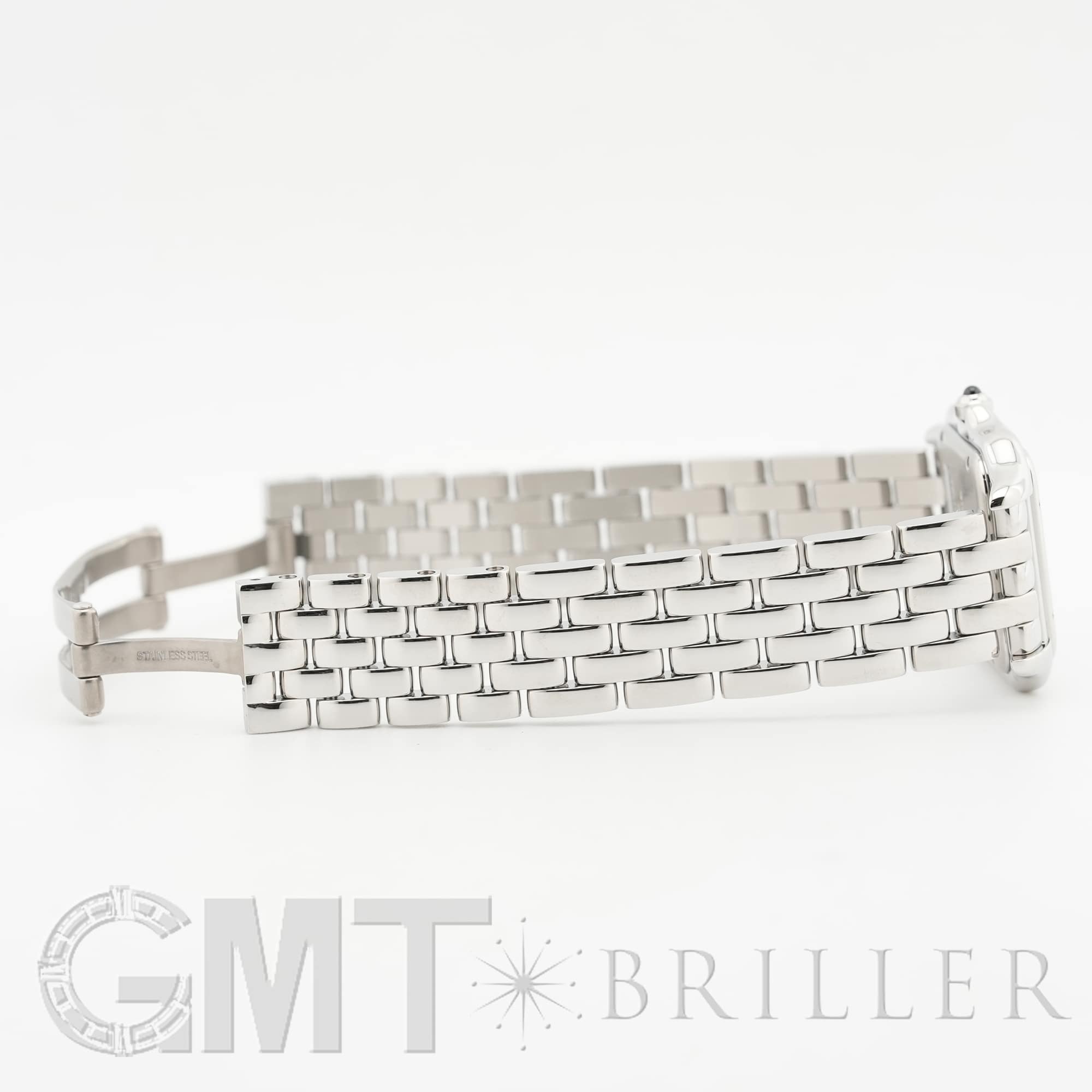 カルティエ パンテール ドゥ カルティエ MM WSPN0015 Cartier 1980年代に一世を風靡し、伝説的な人気を誇ったカルティエのアイコンウォッチ「パンテール」が復活しました。 その名はフランス語で「豹」を意味し、カルティエのジュエリーコレクションでも度々登場する象徴的なモチーフです。 特徴的なスクエアケースと流れるような5連ブレスレットは、しなやかに手首にフィットし、ジュエリーのような心地よさを実現。鏡面の輝きを持つブレスレットは光を受けて華やかにきらめき、腕元をエレガントに彩ります。 時計でありながらジュエリーとしての美しさを兼ね備えた「パンテール」は、日常から特別なシーンまで、身に着ける人を洗練された印象へと導いてくれるタイムピースです。 カルティエ時計の買取り・下取りも行っておりますので、お気軽にご相談ください。