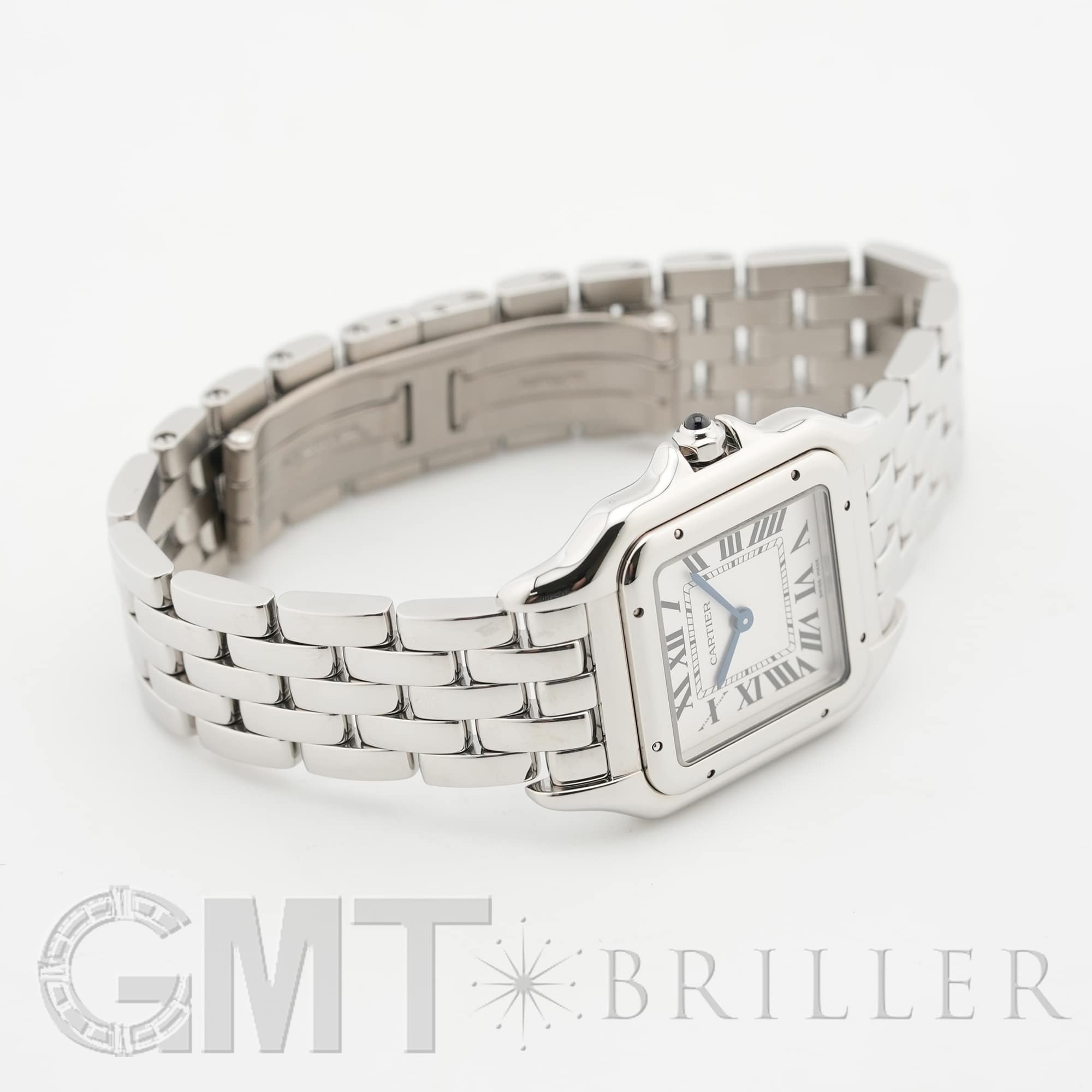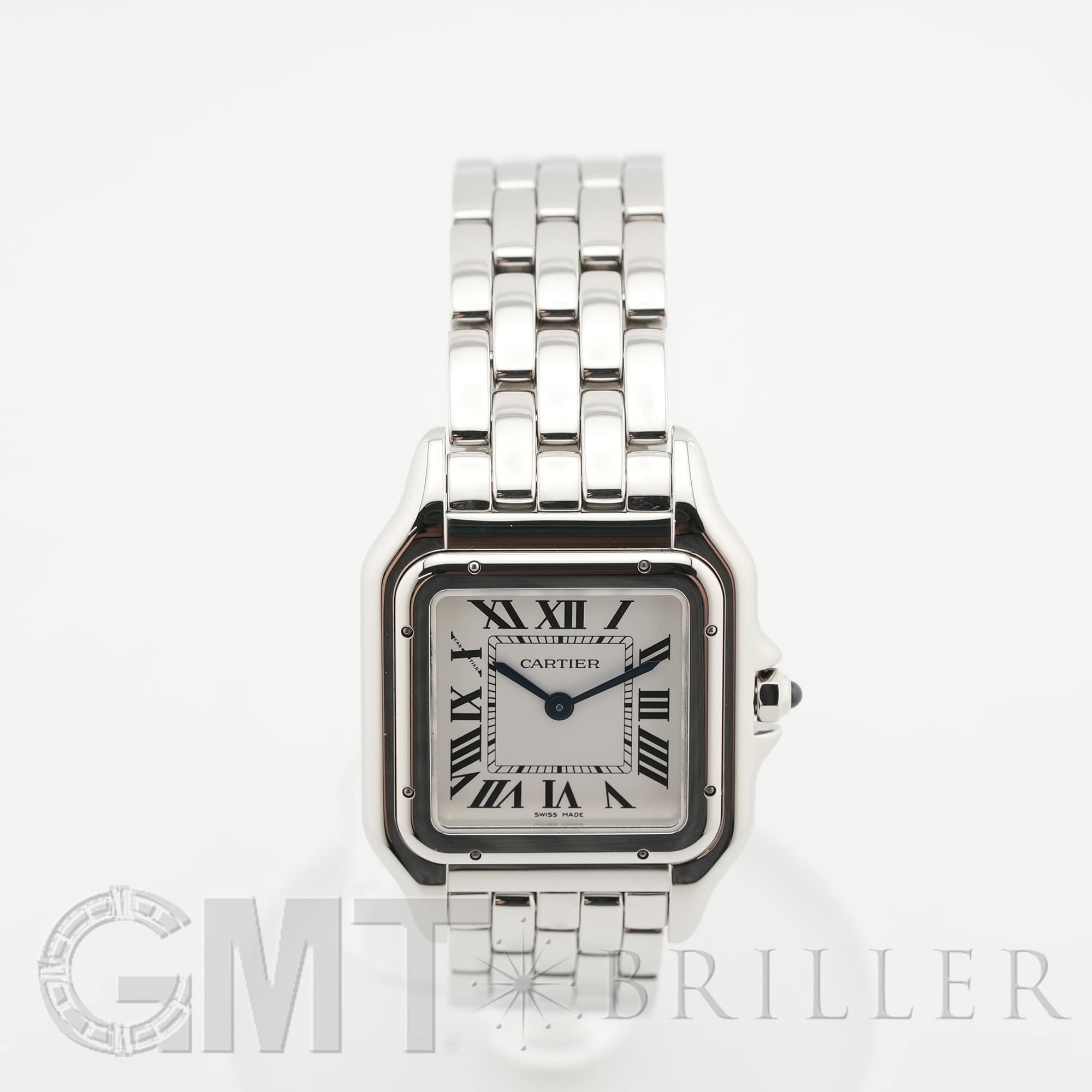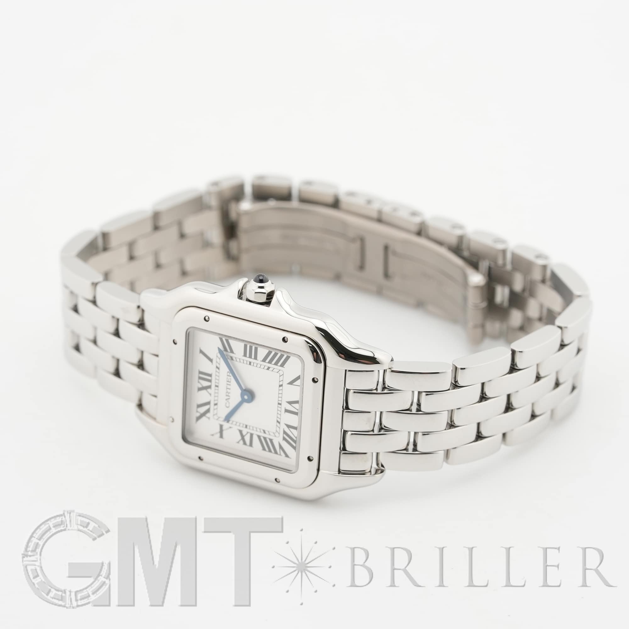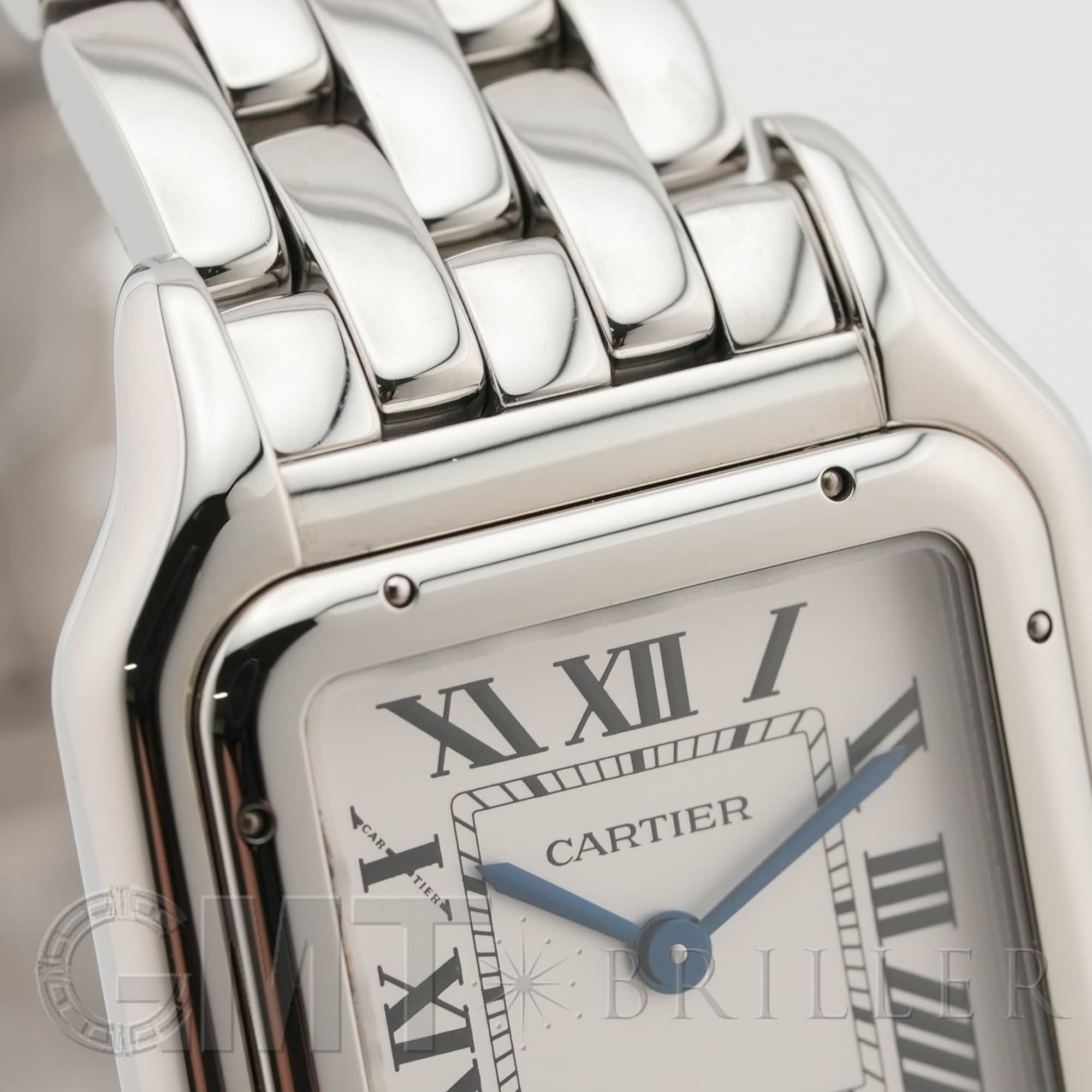 カルティエ パンテール ドゥ カルティエ MM WSPN0015 Cartier 1980年代に一世を風靡し、伝説的な人気を誇ったカルティエのアイコンウォッチ「パンテール」が復活しました。 その名はフランス語で「豹」を意味し、カルティエのジュエリーコレクションでも度々登場する象徴的なモチーフです。 特徴的なスクエアケースと流れるような5連ブレスレットは、しなやかに手首にフィットし、ジュエリーのような心地よさを実現。鏡面の輝きを持つブレスレットは光を受けて華やかにきらめき、腕元をエレガントに彩ります。 時計でありながらジュエリーとしての美しさを兼ね備えた「パンテール」は、日常から特別なシーンまで、身に着ける人を洗練された印象へと導いてくれるタイムピースです。 カルティエ時計の買取り・下取りも行っておりますので、お気軽にご相談ください。