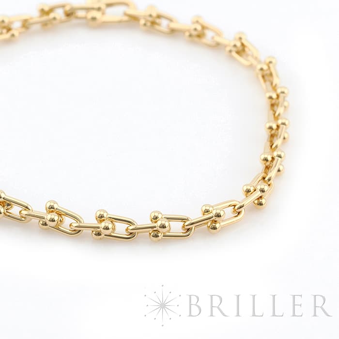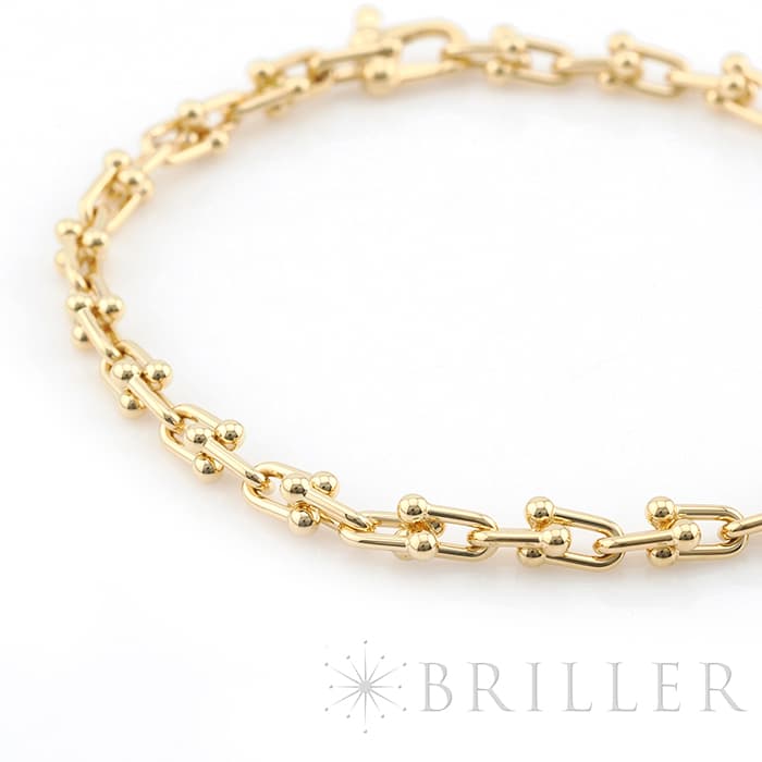 世界5大ジュエラーの1つであるティファニーは、鮮やかなティファニーブルーと呼ばれるブランドカラーで、ジュエリー好きでなくても知らない人がいないほどの知名度を誇るアメリカのブランドです。 ブランド発祥の地であるニューヨークの力強さと今の時代を生き抜く女性をイメージしたハードウェアは、2017年の誕生以来大人気のコレクションです。こちらは手首回りがスモールサイズで、内径14.6cmとなります。