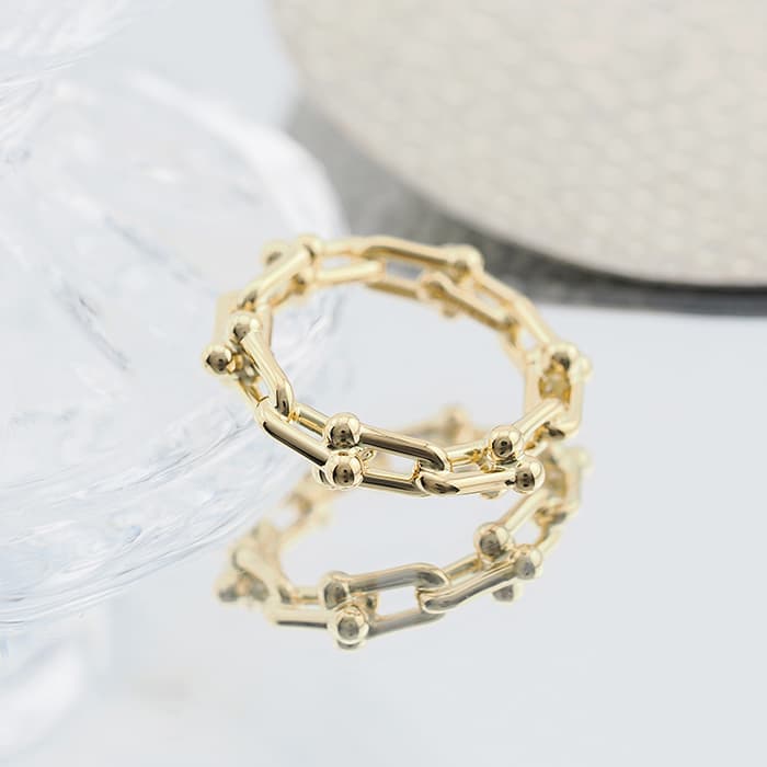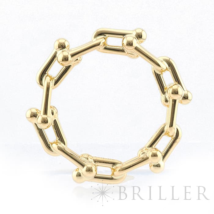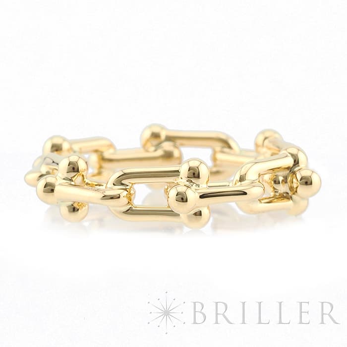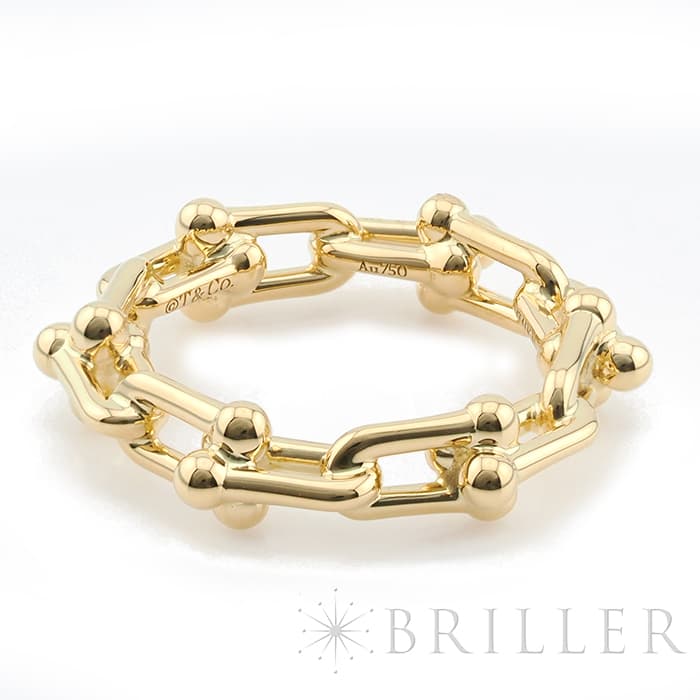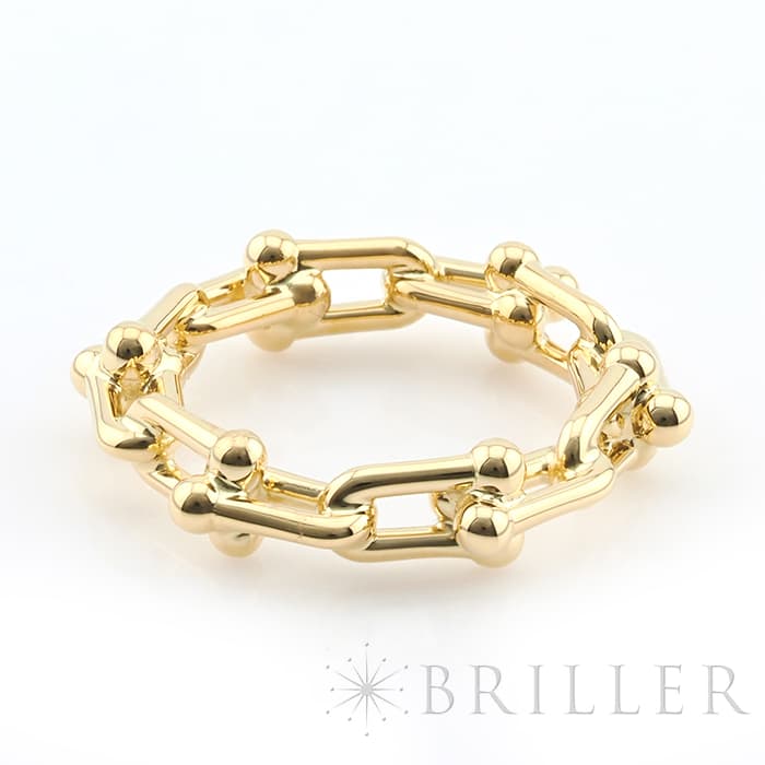 世界5大ジュエラーの1つであるティファニーは、鮮やかなティファニーブルーと呼ばれるブランドカラーで、ジュエリー好きでなくても知らない人がいないほどの知名度を誇るアメリカのブランドです。ブランド発祥の地であるニューヨークの力強さと今の時代を生き抜く女性をイメージしたハードウェアは、2017年の誕生以来大人気のコレクションです。ハードウェアならではのゲージリンクが目を引くリングです。一つで身につけるのももちろん、重ね付けにもピッタリなリングです。