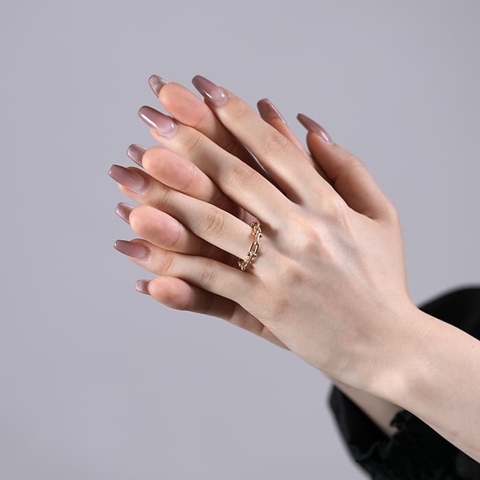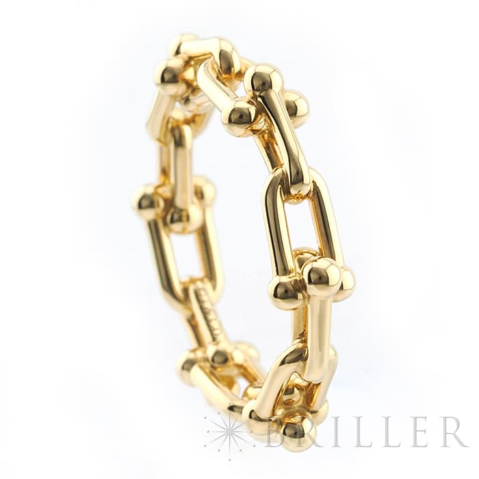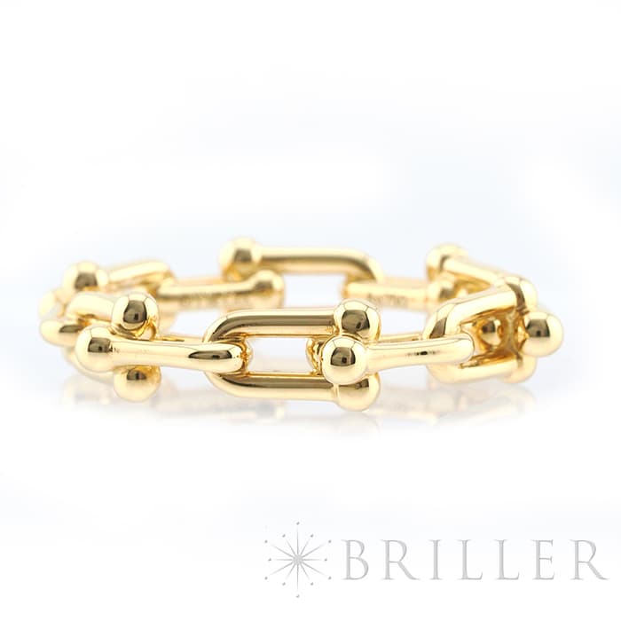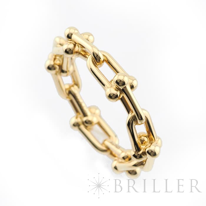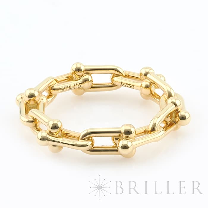 世界5大ジュエラーの1つであるティファニーは、鮮やかなティファニーブルーと呼ばれるブランドカラーで、ジュエリー好きでなくても知らない人がいないほどの知名度を誇るアメリカのブランドです。ブランド発祥の地であるニューヨークの力強さと今の時代を生き抜く女性をイメージしたハードウェアは、2017年の誕生以来大人気のコレクションです。ハードウェアならではのゲージリンクが目を引くリングです。一つで身につけるのももちろん、重ね付けにもピッタリなリングです。