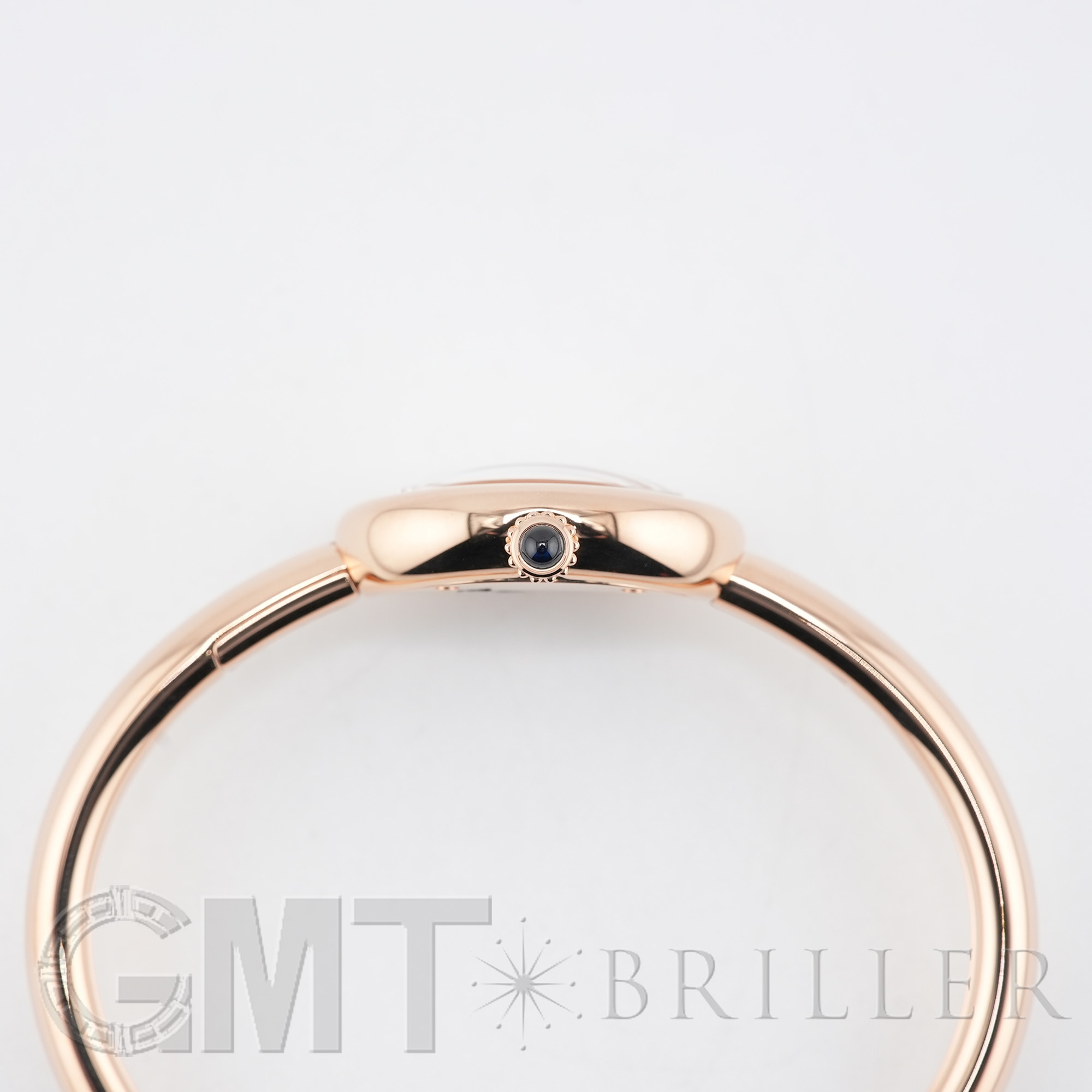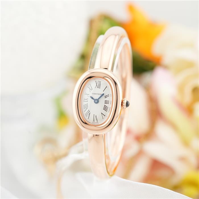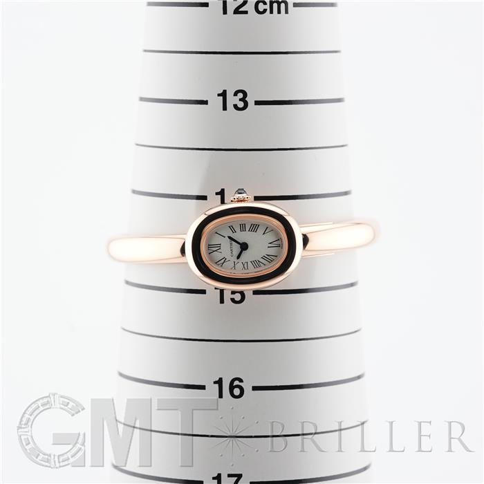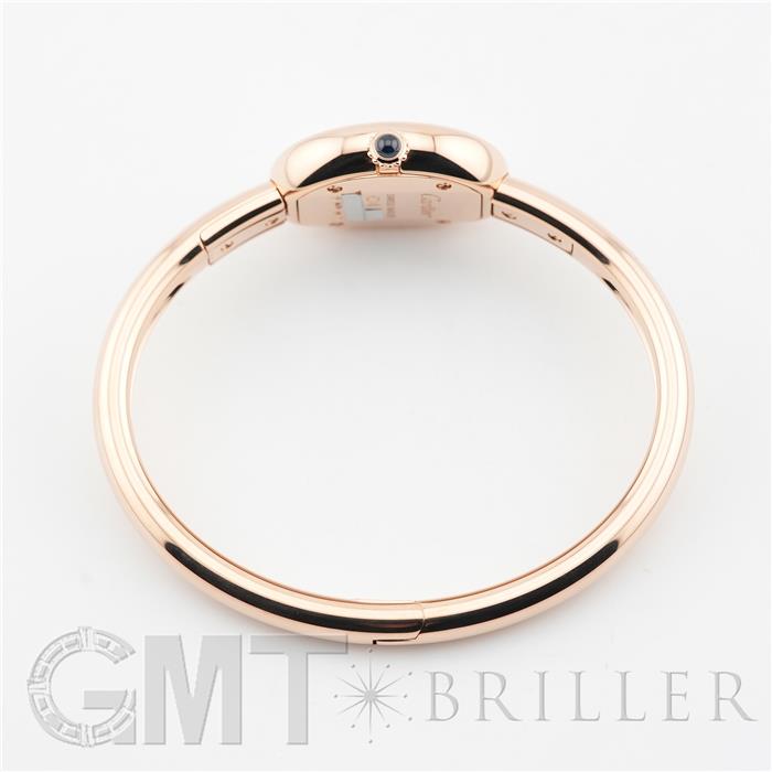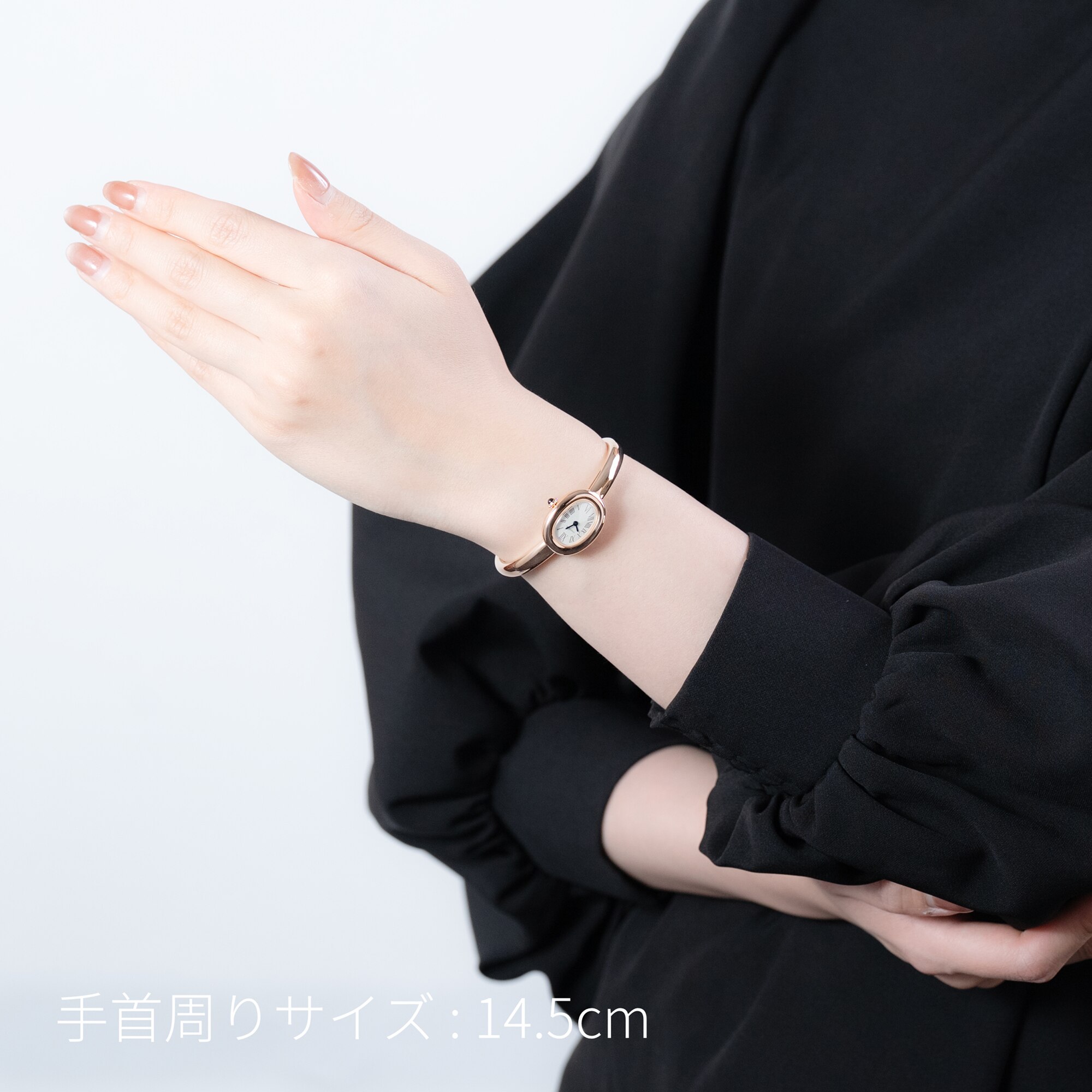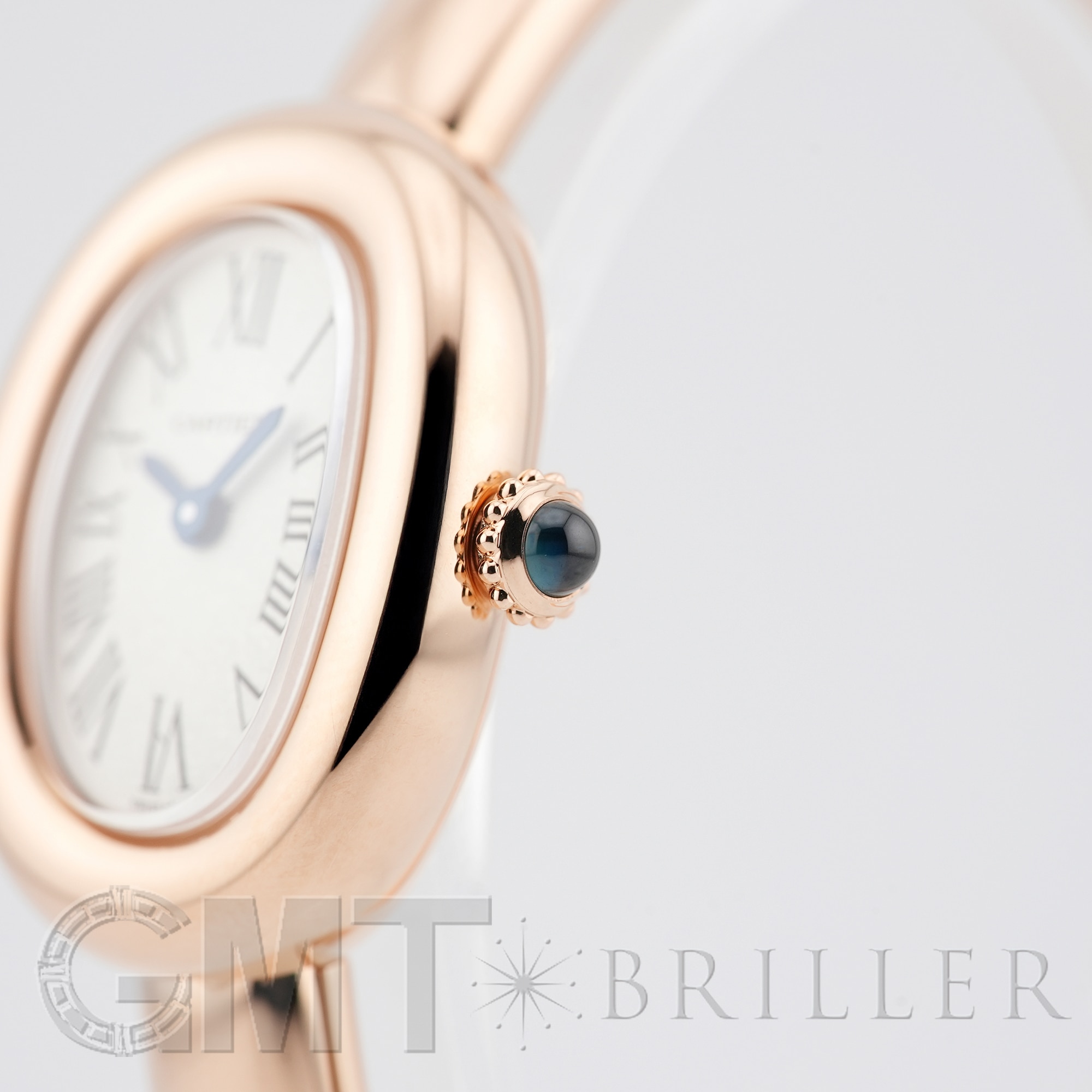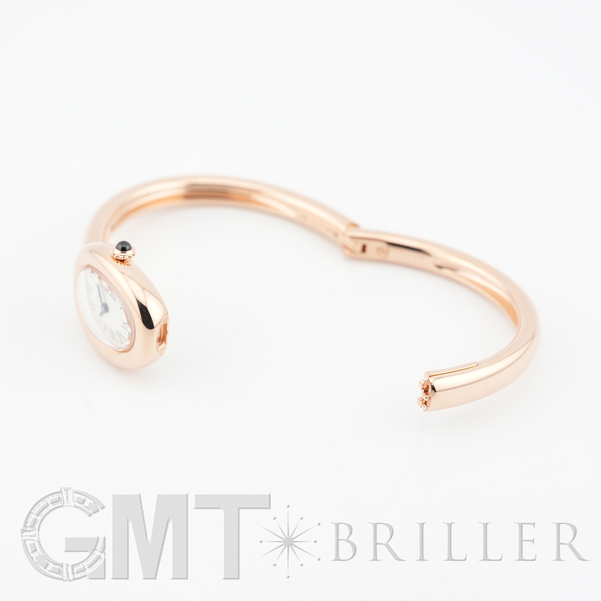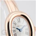 カルティエ ベニュワール ウォッチ (サイズ 15)ミニモデル ピンクゴールド WGBA0047 Cartier 独創的なオーバルシェイプが印象的な、カルティエ「ベニュワール」のミニモデルです。 フランス語で「バスタブ」を意味するその名の通り、ふくよかな曲線を描くケースが女性の手元を優美に演出します。素材はピンクゴールド採用しており、時計の枠を超えた上質なジュエリーとしての存在感を放ちます。ケースとブレスレットが一体化したようなデザインは、リューズなどの突起を極限まで抑えることで、純粋な曲線の美しさを際立たせました。 サイズ15は多くの女性の手首にフィットしやすく、まるで肌の一部のように馴染む装着感を実現しています。 単体での着用はもちろん、他のジュエリーとの重ね付けも楽しめる、洗練された大人の女性のための至高のタイムピースです。 カルティエ時計の買取り・下取りも行っておりますので、お気軽にご相談ください。