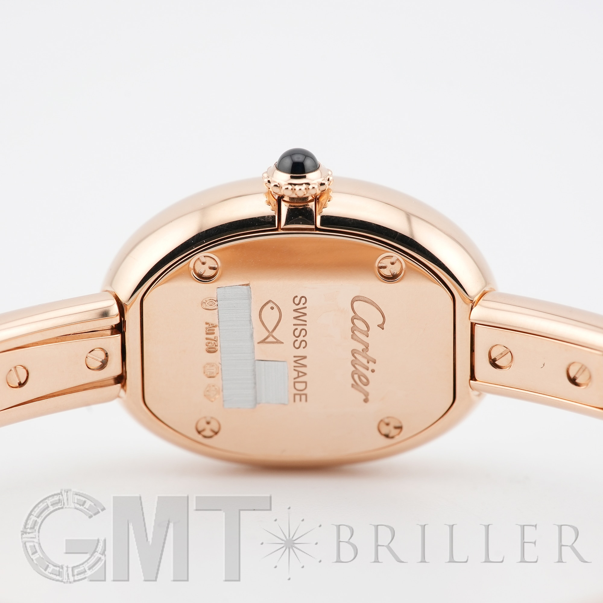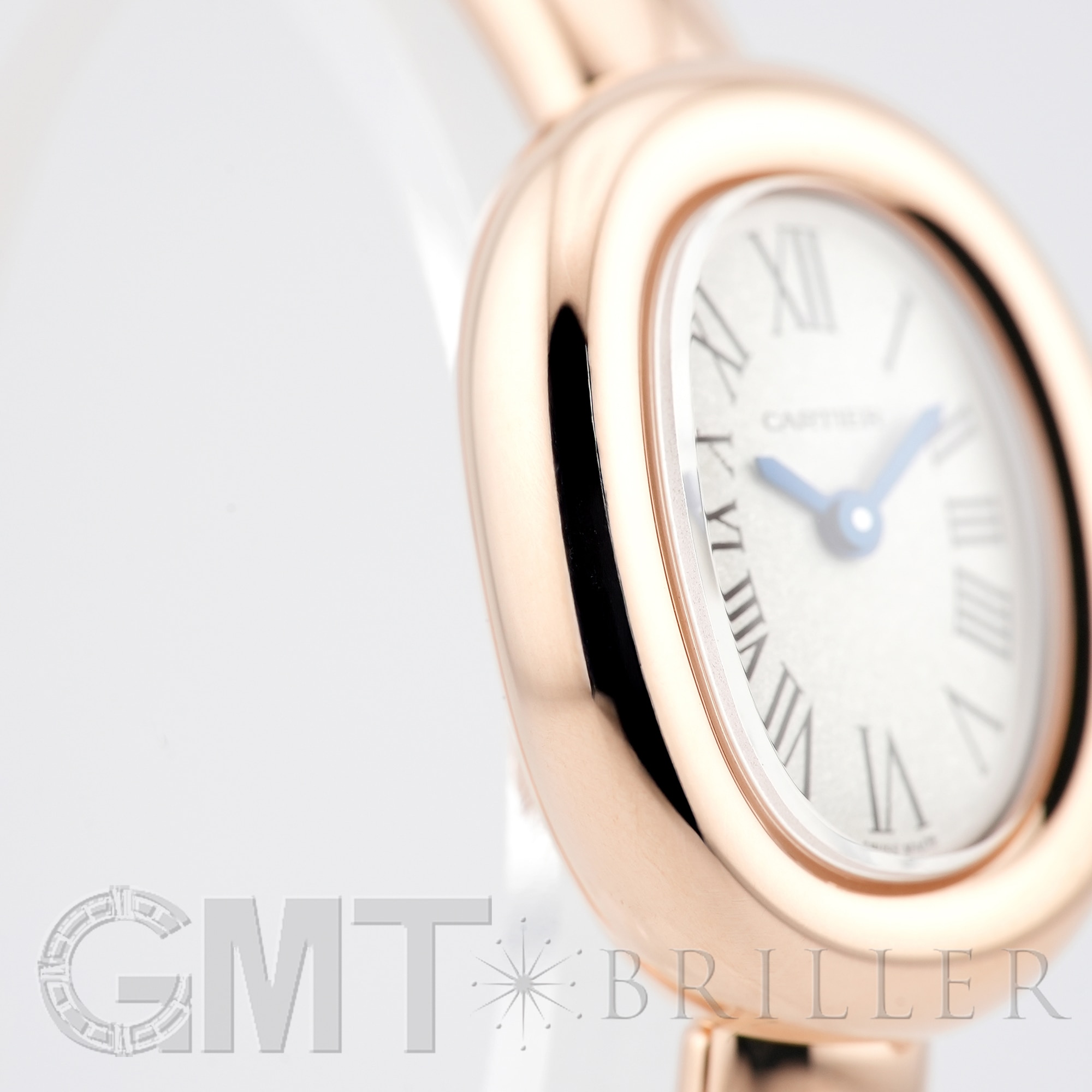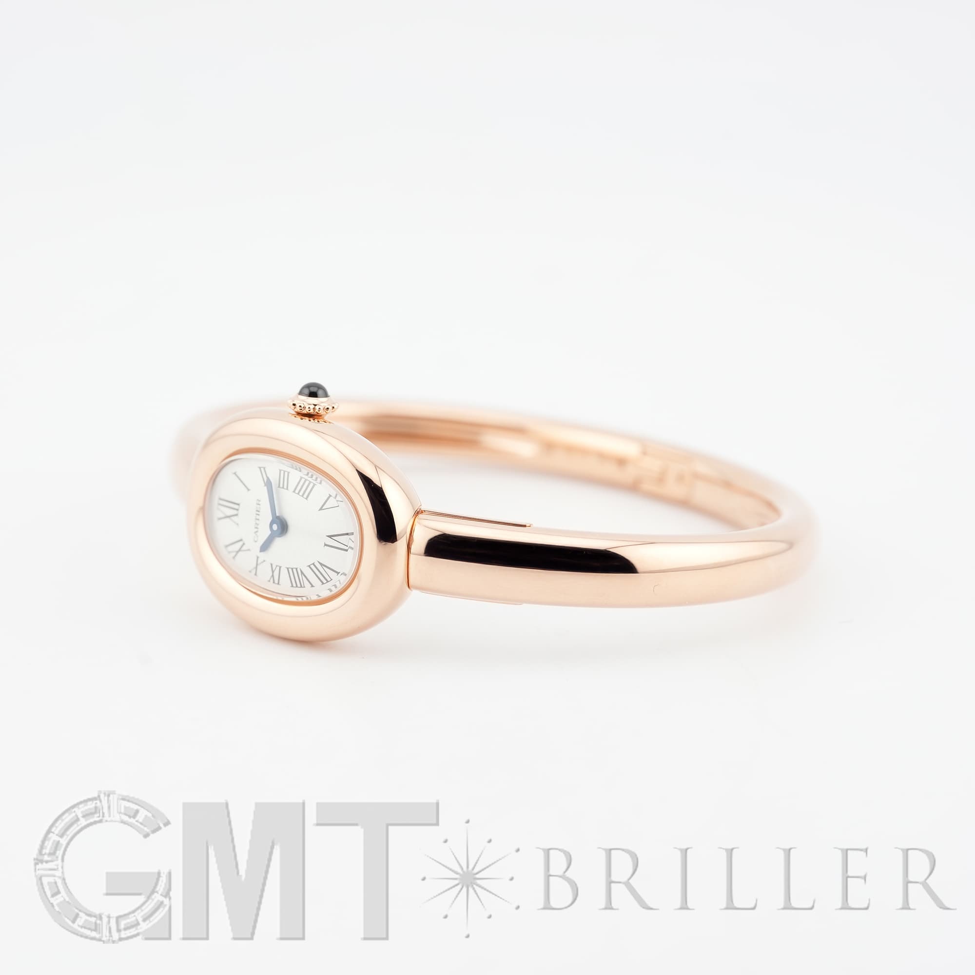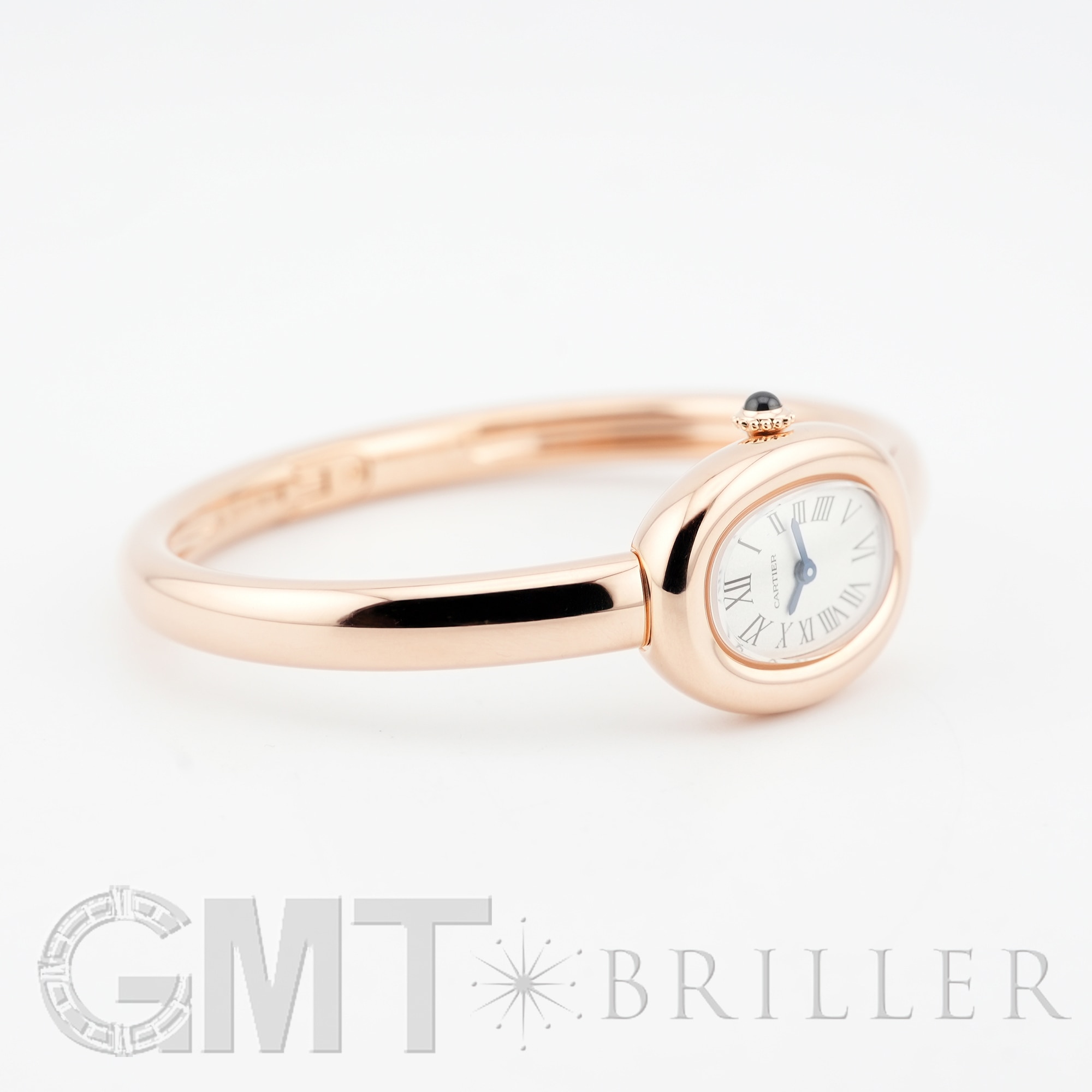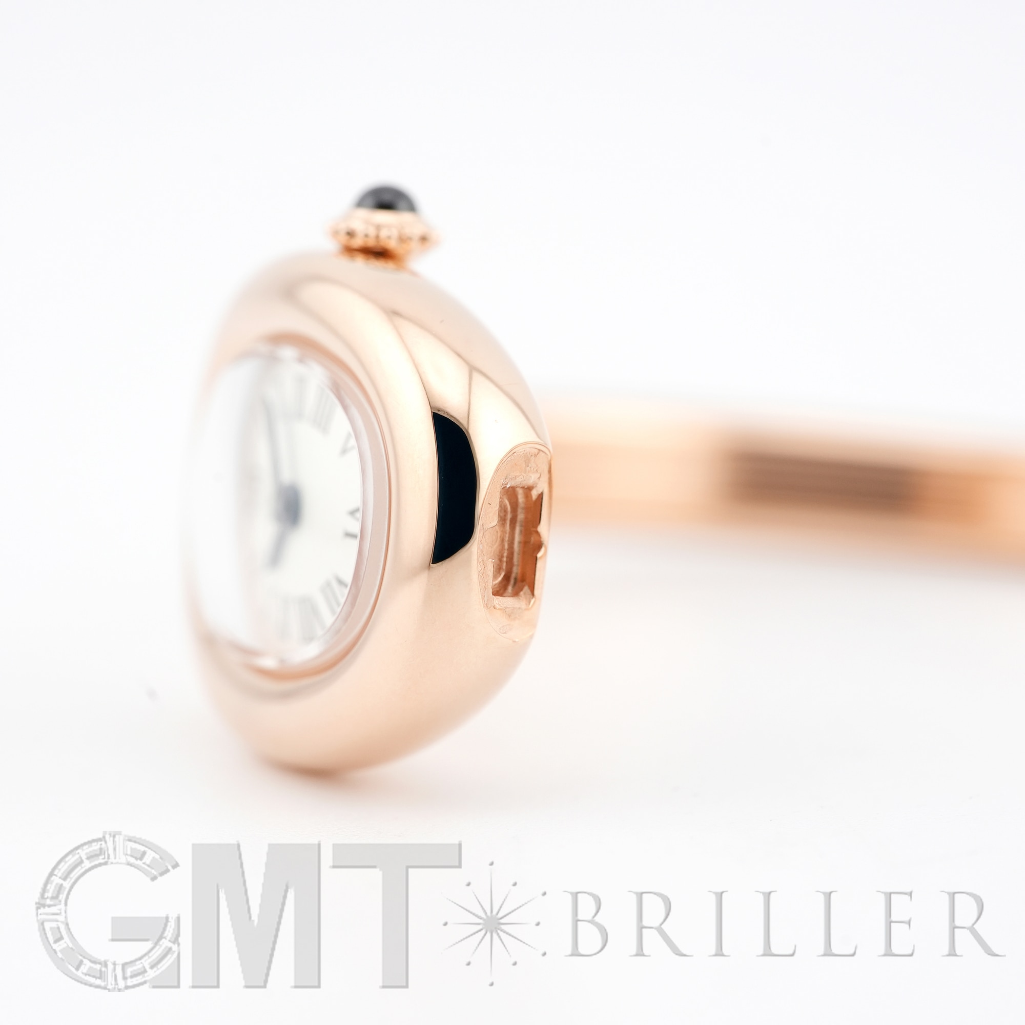 カルティエ ベニュワール ウォッチ (サイズ 15)ミニモデル ピンクゴールド WGBA0047 Cartier 独創的なオーバルシェイプが印象的な、カルティエ「ベニュワール」のミニモデルです。 フランス語で「バスタブ」を意味するその名の通り、ふくよかな曲線を描くケースが女性の手元を優美に演出します。素材はピンクゴールド採用しており、時計の枠を超えた上質なジュエリーとしての存在感を放ちます。ケースとブレスレットが一体化したようなデザインは、リューズなどの突起を極限まで抑えることで、純粋な曲線の美しさを際立たせました。 サイズ15は多くの女性の手首にフィットしやすく、まるで肌の一部のように馴染む装着感を実現しています。 単体での着用はもちろん、他のジュエリーとの重ね付けも楽しめる、洗練された大人の女性のための至高のタイムピースです。 カルティエ時計の買取り・下取りも行っておりますので、お気軽にご相談ください。