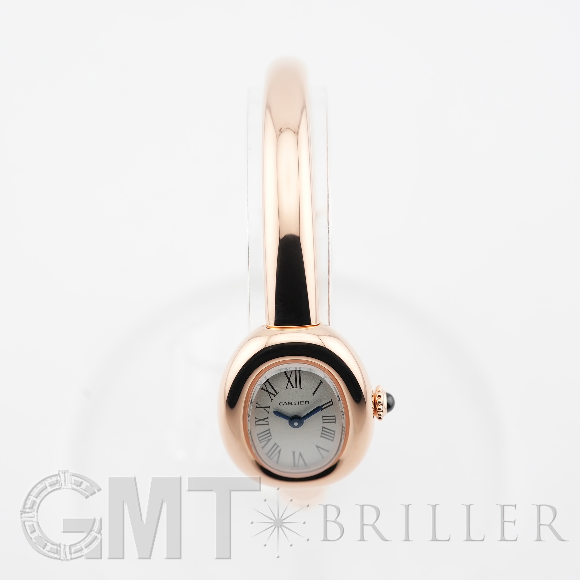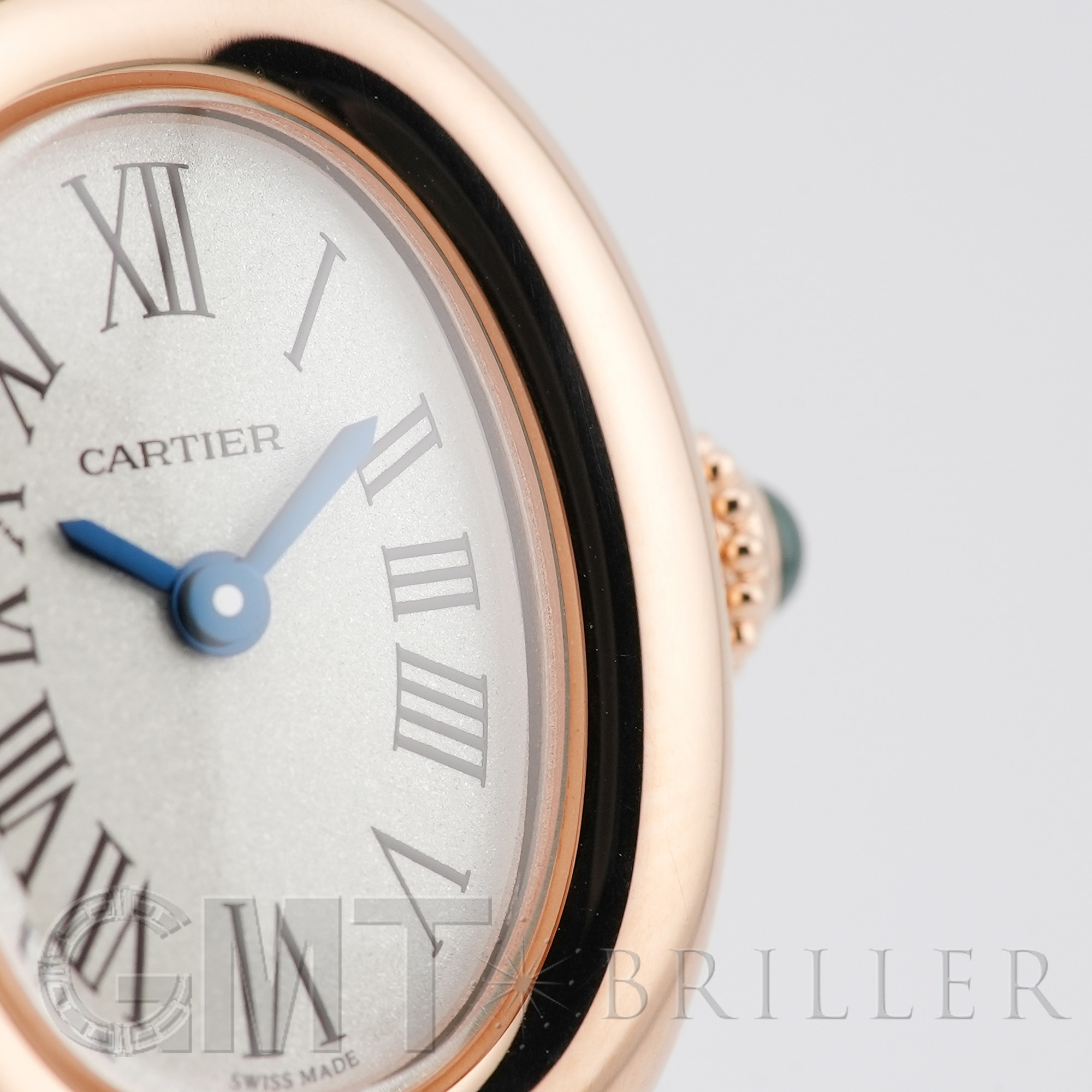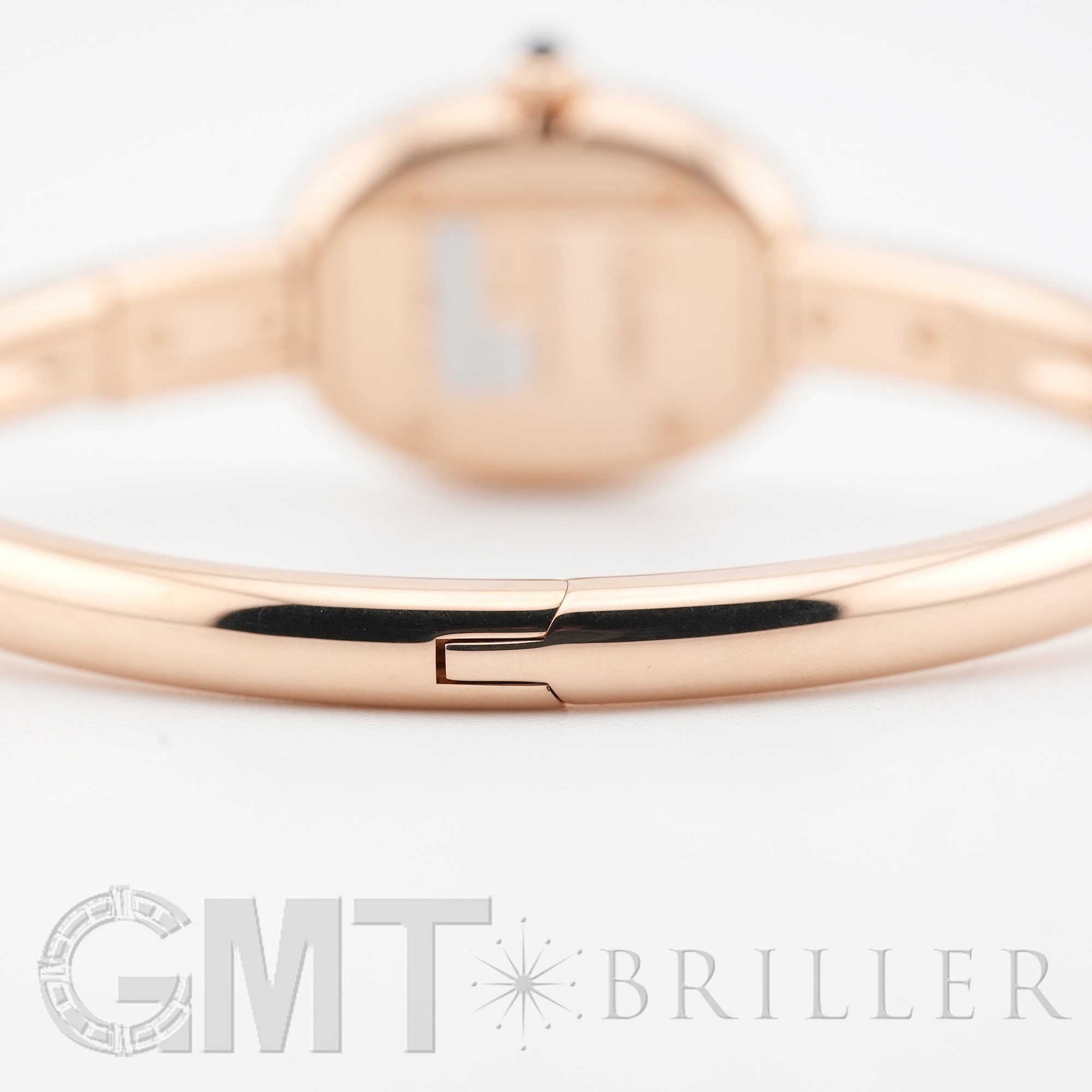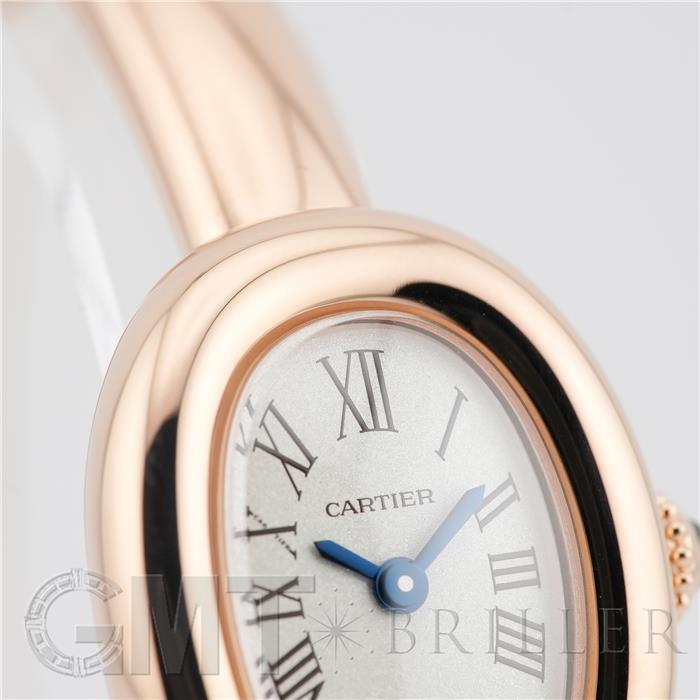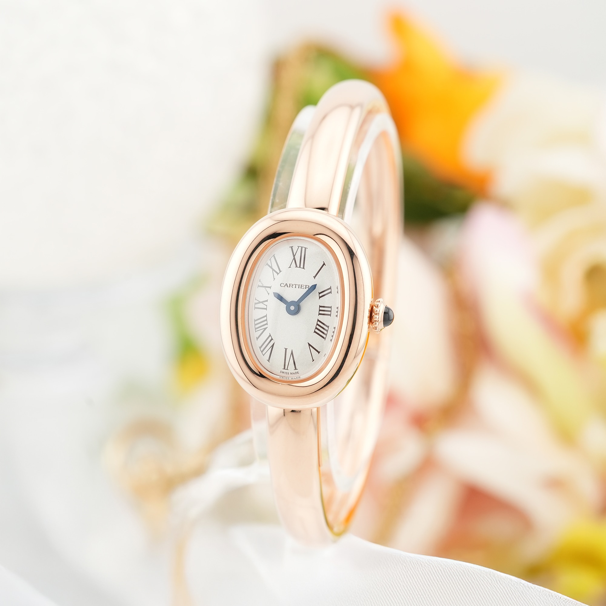 カルティエ ベニュワール ウォッチ (サイズ 15)ミニモデル ピンクゴールド WGBA0047 Cartier 独創的なオーバルシェイプが印象的な、カルティエ「ベニュワール」のミニモデルです。 フランス語で「バスタブ」を意味するその名の通り、ふくよかな曲線を描くケースが女性の手元を優美に演出します。素材はピンクゴールド採用しており、時計の枠を超えた上質なジュエリーとしての存在感を放ちます。ケースとブレスレットが一体化したようなデザインは、リューズなどの突起を極限まで抑えることで、純粋な曲線の美しさを際立たせました。 サイズ15は多くの女性の手首にフィットしやすく、まるで肌の一部のように馴染む装着感を実現しています。 単体での着用はもちろん、他のジュエリーとの重ね付けも楽しめる、洗練された大人の女性のための至高のタイムピースです。 カルティエ時計の買取り・下取りも行っておりますので、お気軽にご相談ください。