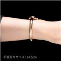 メジャーを手首に巻きつけて、手首のサイズを測ります。 サイズを確認して、ピッタリのサイズをお知らせください。お知らせいただいたサイズを元に、「標準的な余裕」がでるようにブレスレットサイズを調整いたします。 写真の場合、手首周りは「14cm」となります。