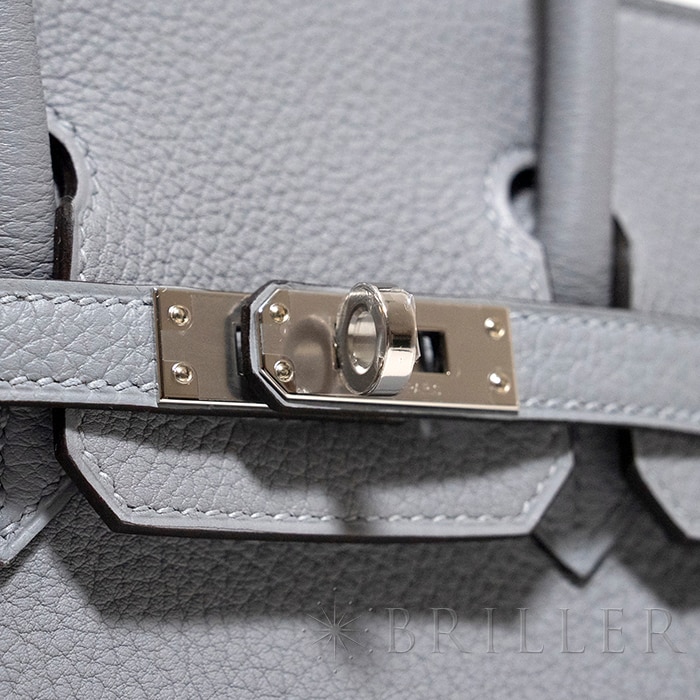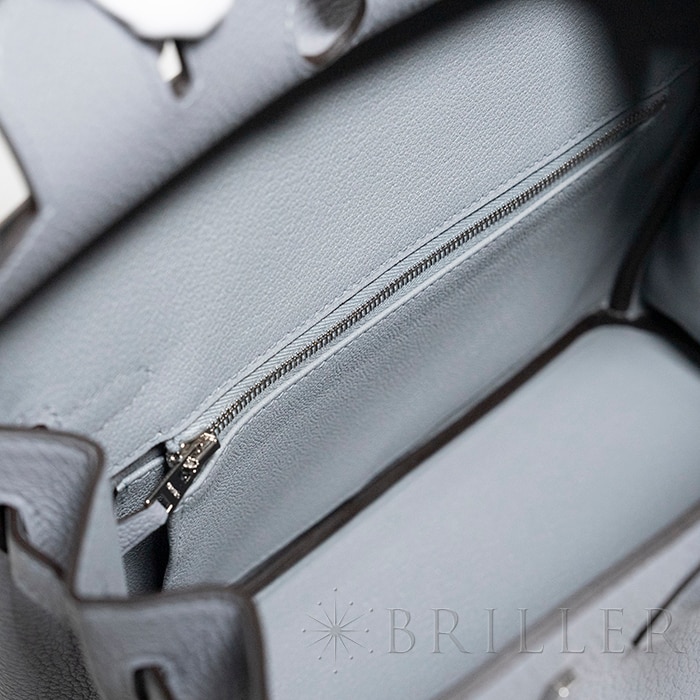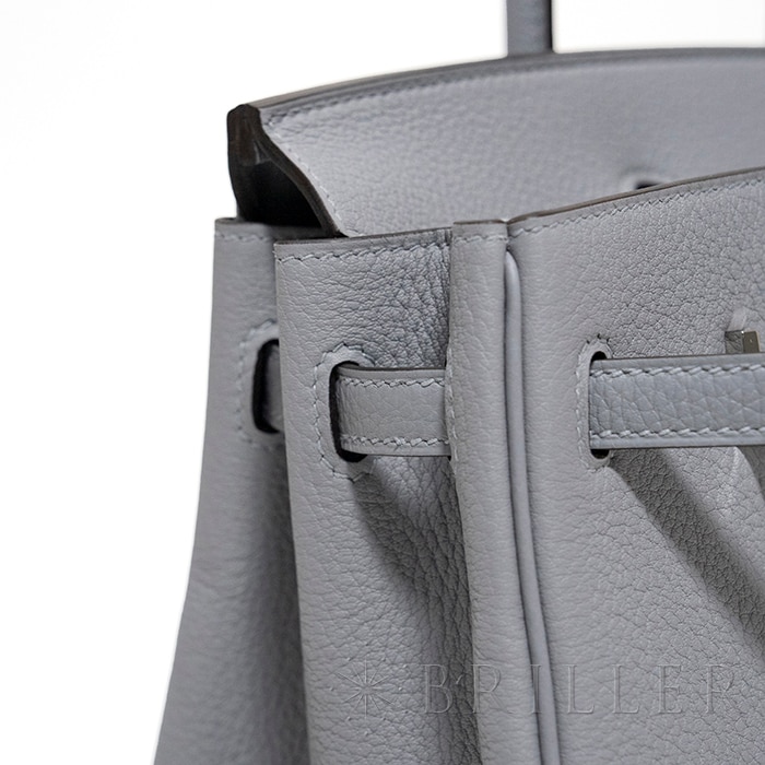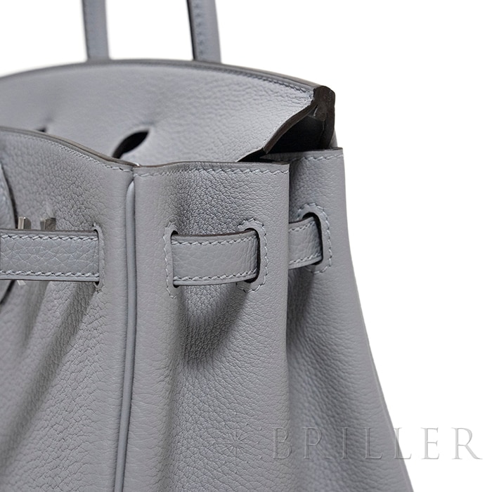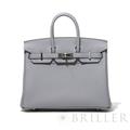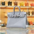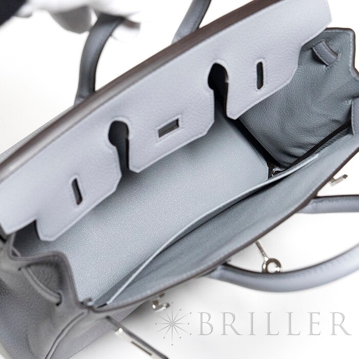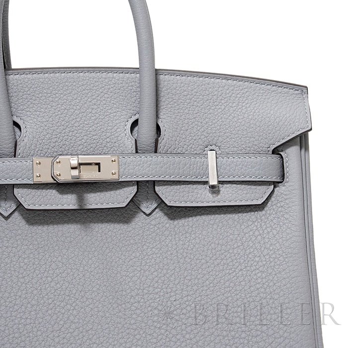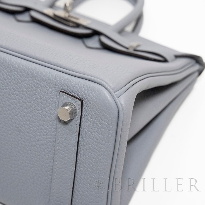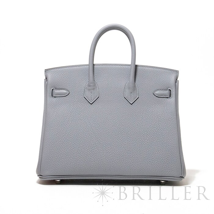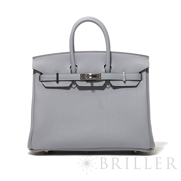 エルメス バーキン25 トゴ グリパンタン シルバー金具 HERMES 「バーキン」の由来は女優の「ジェーン・バーキン」が航空機でエルメスの社長と出会い、物があふれかえりそうになっている彼女のバッグを見て、収納がたくさんできるバッグとして創られました。整理せず物を入れることができる秀逸な「バーキン」は全世界で愛されています。バーキンの中でも最も小さい25サイズはハンドル部分が短く細いので、肘にかけて持つというよりは、手持ちにちょうどよいサイズ感がエレガントな雰囲気に決まります。ミニ財布やポーチなど外出時に必要最低限の持ち物でお出かけされる方に大変おすすめです。2025年SSに登場した最新カラーの「グリパンタン」は、涼しげですが、どこか奥深いブルーグレーで、エルメスらしさを感じていただけるカラーです。 K刻印(2025年)の新品のお品物です。
