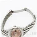 ROLEX ロレックス デイトジャスト 28 279174G ピンク ジュビリーブレスレット1945年に誕生して以来、人気を誇る「デイトジャスト」を女性向けにデザインされた時計。 ムーブメントにはロレックスが特許を取得したシリコン製シロキシ・ヘアスプリングを備えたキャリバー「2236」が使用されています。このムーブメントによって従来品よりもパワーリザーブが55時間に延長され、時計を外すことが多い方にも利用しやすい仕様に進化しています。レディ デイトジャストの細かいコマのつくりは、手首にフィットしやすく、着け心地抜群で、バックルは女性の力でもワンタッチで簡単に開閉し、取り外せる使いやすいブレスレットです。文字盤に利用されているピンク色は可愛らしさと柔らかさを10ポイントのダイヤモンドの輝きがホワイトゴールドのベゼルと合わせることで高級感を銀色の三針が映えているデザインの実用性とデザイン性を兼ねたモデルとなっています。シリアル ランダム品番※コンディションにつきましては、外装仕上げの必要が無いくらいの状態になります。当社の中古品はインターネットでも安心してご購入頂けるよう、しっかりとした点検整備を行っております。ロレックス レディース腕時計の買取り・下取りも行っておりますので、お気軽にご相談ください。
