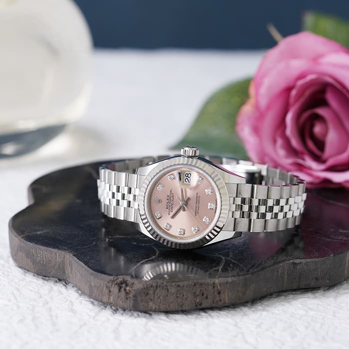 1945年に誕生して以来、人気を誇る「デイトジャスト」を女性向けにデザインされた時計。