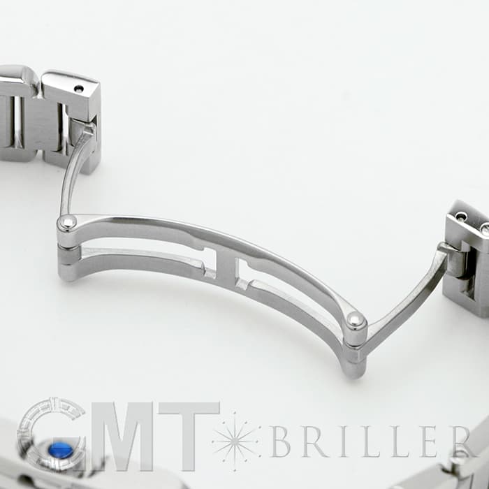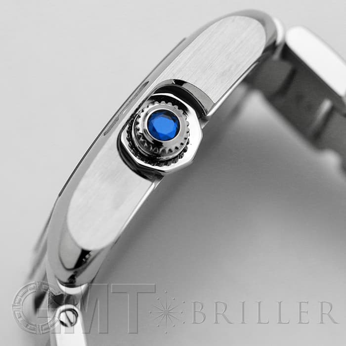 直線的でありながらも角には丸みをもたせてやわらかなニュアンスを感じさせる、シンプルかつ洗練されたフォルムは、クラシカルな表情を見せる文字盤などオリジナルモデルの特徴を受け継いでいます。ケースに組み込まれたリューズにはブルーのスピネルが組み込まれており、美しいアクセントになっています。縦が30.2mmほどあるので、メンズライクな大きさを求めている方にもおすすめの時計です。