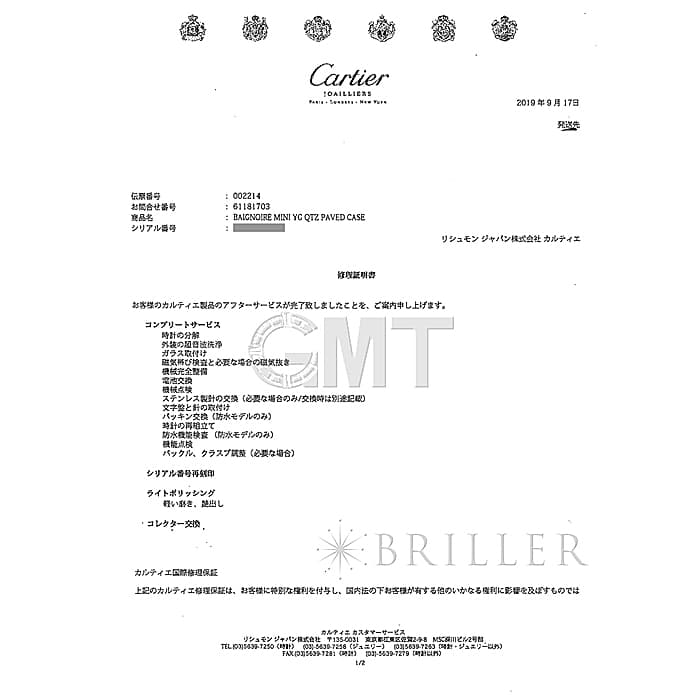 2019年9月 カルティエにてコンプリートサービス・外装仕上げ済み