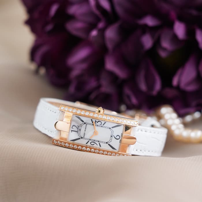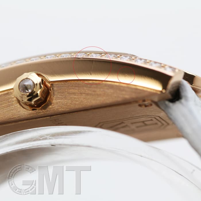 ピンクゴールドのケースにダイヤモンドをベゼルにセッティングし、