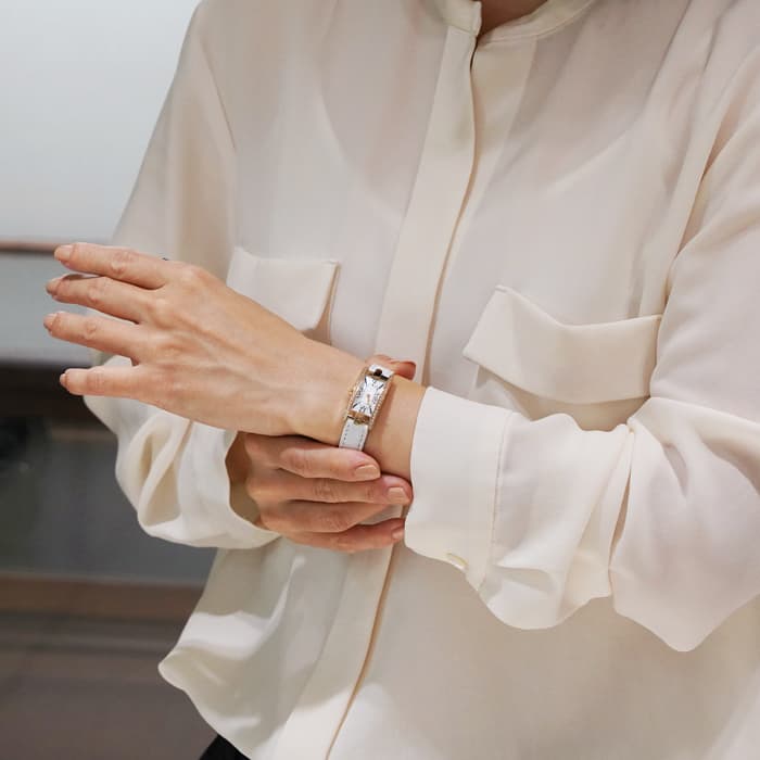 お客様の手首まわりのサイズを商品詳細ページでご入力ください。新品・未使用品の場合、サイズ調整後の返品・交換はお承りしておりませんので予めご了承ください。