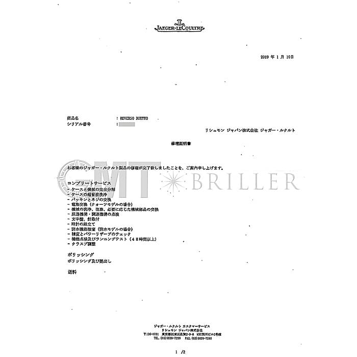 内外箱・国内正規保証書・冊子・替えベルト・修理明細書コピー