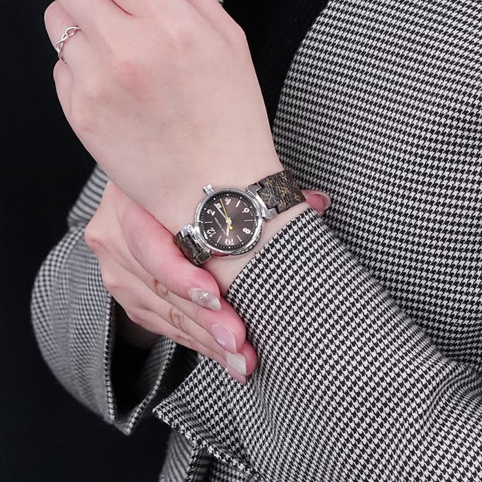本個体はヴィトンらしいブラウンカラーで統一されており、一目で同ブランドとわかる時計になっています。