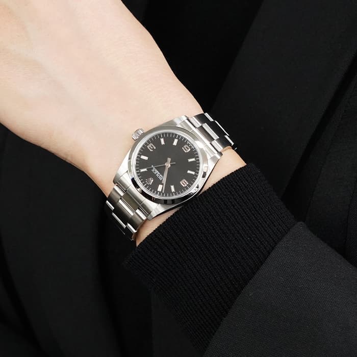 オイスターケースに自動巻きムーブメントを搭載したシンプルな3針モデルの