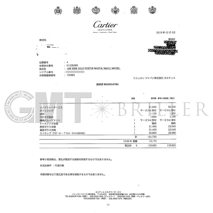 2019年12月カルティエにてコンプリートサービス、ストラップ交換