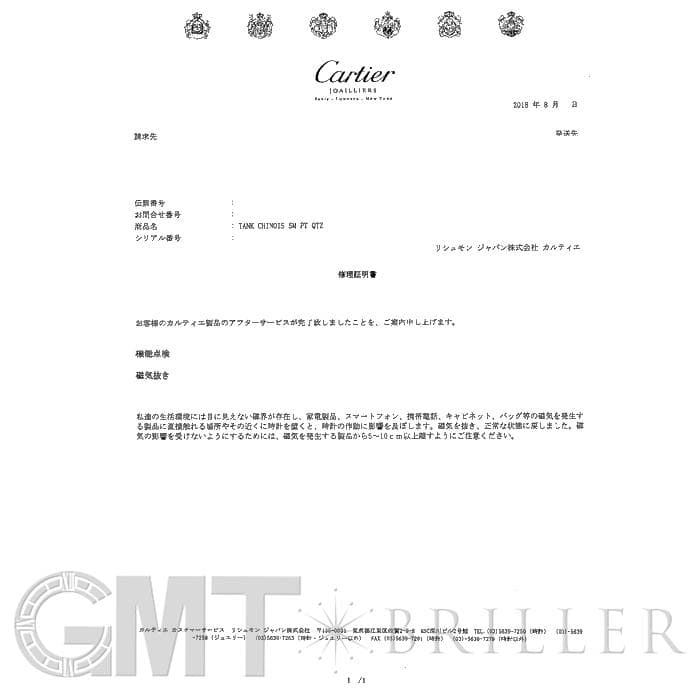 内外箱・国内正規保証書・冊子・修理明細コピー