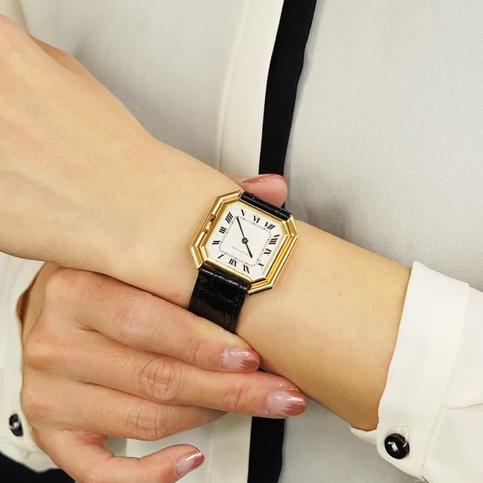 カルティエ サンチュールLM YG オートマティック 1847年にパリで創業した王族御用達の高級宝飾ブランド「カルティエ」 誰もが知る有名ブランドは様々な時計を手掛けてきました。 そして、今回当店に入荷いたしましたのは現在生産が終了している「サンチュール」です。 2重のベゼルと四角形の角が削られたようなオクタゴンケースがポイントとなり、 リューズがケースと一体化しているためすっきりとした印象を持つモデルです。 ホワイトの文字盤にローマインデックスがシンプルで上品な印象を持ち、 アンティーク調なデザインがお好みな方におすすめな1本であります。 左右対称なデザインが美しく品があるため、着用シーンの幅は広く、 また、LM(31mm)というケースサイズなため、上品ながらにちゃんと主張を持つ時計です。 保証書日付 1976年5月 2020年3月 当社提携修理工房にて、オーバーホール・外装仕上げ・GMTベルト交換済み ※ベゼル、ケース、クラスプにキズ、文字盤に汚れが見られます。 当社の中古品はインターネットでも安心してご購入頂けるよう、しっかりとした点検整備を行っております。 カルティエ 時計の買取り・下取りも行っておりますので、お気軽にご相談ください。