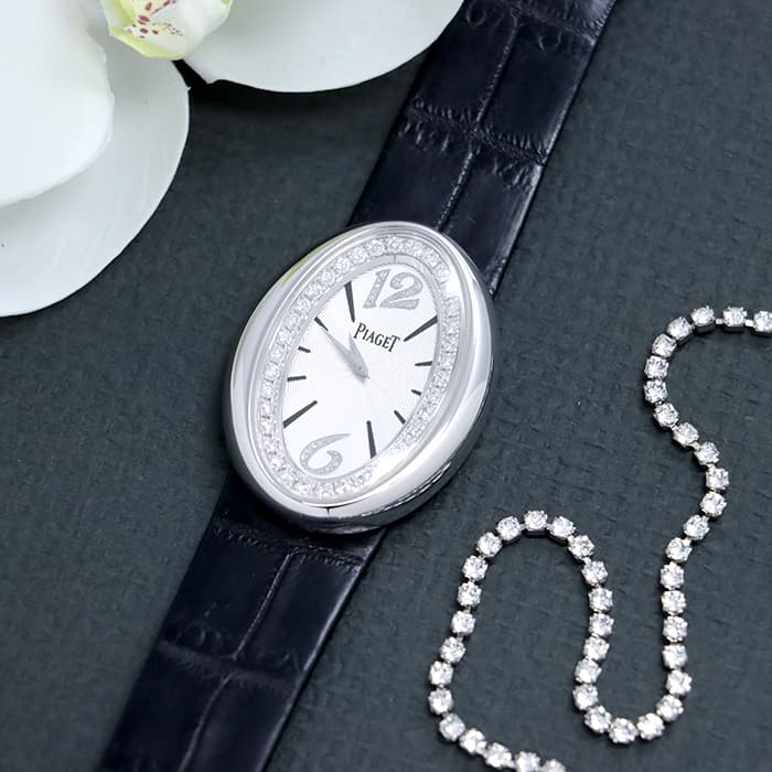 ホワイトゴールド素材の美しい曲線のオーバル型ベゼルを採用したジュエリーウォッチ「ライムライト マジックアワー」