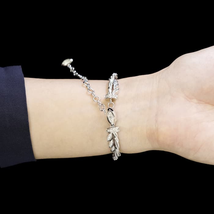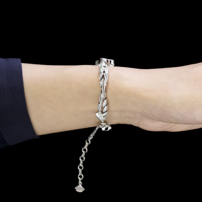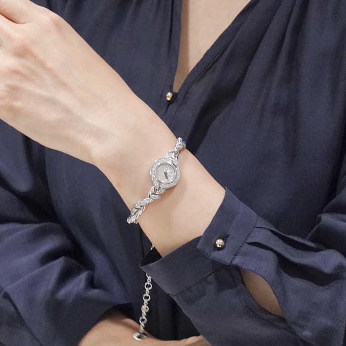 ダイヤモンドの光り輝く葉が、しなやかな曲線を描いたフォルムでセッティングされ、 「美」と「自然」が融合した時計として完成されています。