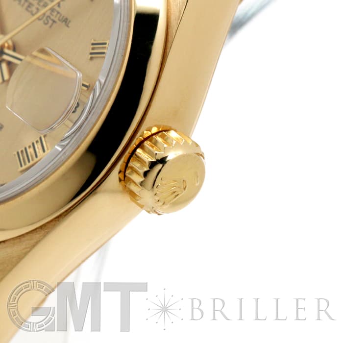 こちらはシャンパンカラーの文字盤にローマインデックスをセッティングしており、イエローゴールドのケースカラーと統一感があります。