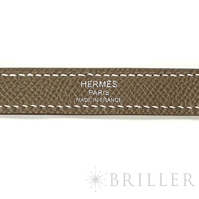 「ケリー」は元々「サック・ア・クロア」という名前で1935年に誕生。女優であったグレース・ケリーがモナコ王妃となり、妊娠した様子を鞄でとっさに隠した写真が話題に。後に「ケリーバッグ」と称されました。こちらのケリーのサイズは32、お仕事やお食事にもお持ちいただける大変優れたバッグです。素材は「エプソン」で2003年登場以来高い人気を誇る光沢のある雄仔牛レザー。光の入り方によってさまざまな顔を魅せてくれる美しい革です。ビビットカラーはもちろん、ニュアンスカラーも得意としたラグジュアリーな雰囲気をもつレザーです。色は人気色の「エトゥープ」一言でグレージュとは言い難い美しいリュクスカラーと、白ステッチがたいへん爽やかな印象。全世界で、特に日本での人気は根強く、外縫いのフォーマルな印象に優しい「エトゥープ」カラーで、四季問わずお使いいただけるマストアイテムです。外縫いケリーの硬派な印象とは裏腹に、エプソンレザーでしあげた当商品は実に軽くサイズも32㎝と荷物も十分入りますので実用性はバッチリです。2016年製造のX刻印、状態も新品未使用のグッドコンディションとなっております。