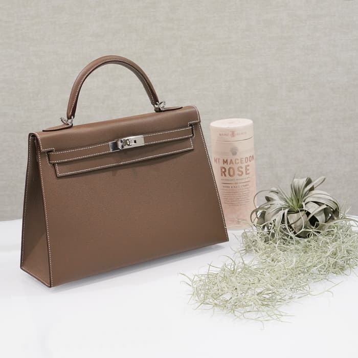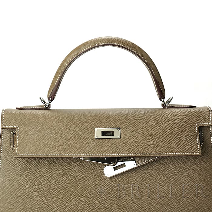 HERMES エルメス ケリー 32 外縫い エプソン エトゥープ シルバー金具