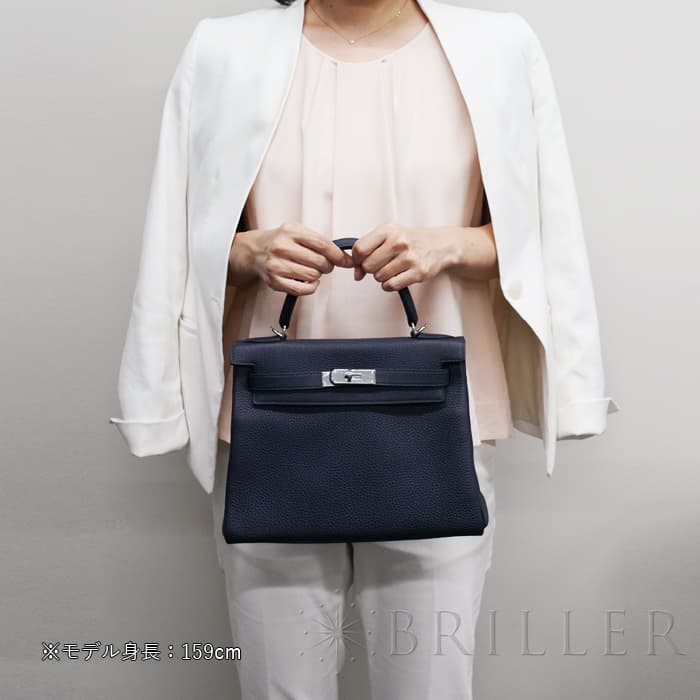 エルメス ケリー28 内縫い トリヨン ブルーニュイ シルバー金具 HERMES KELLY28