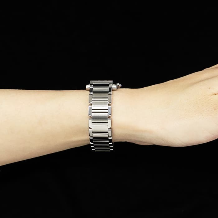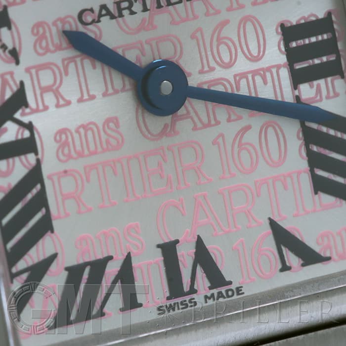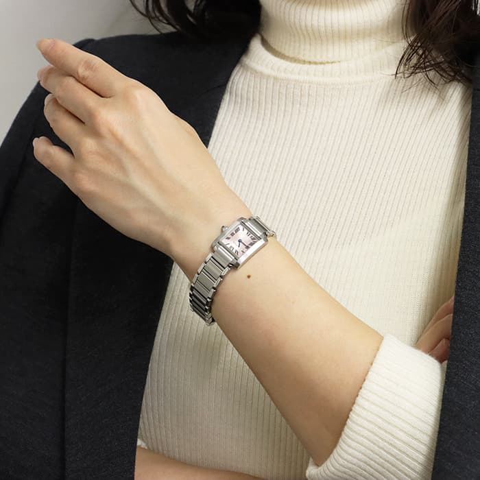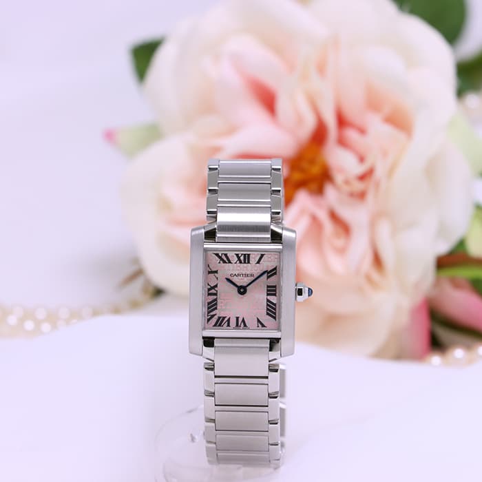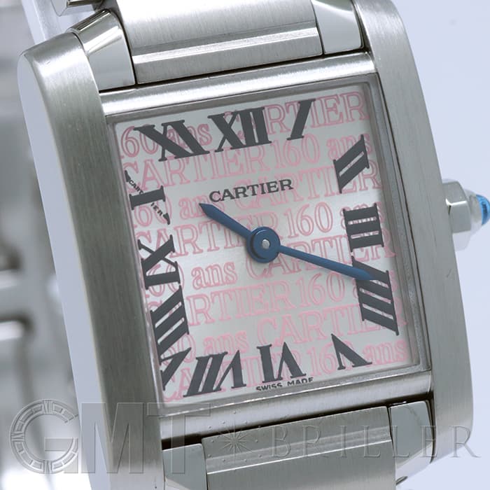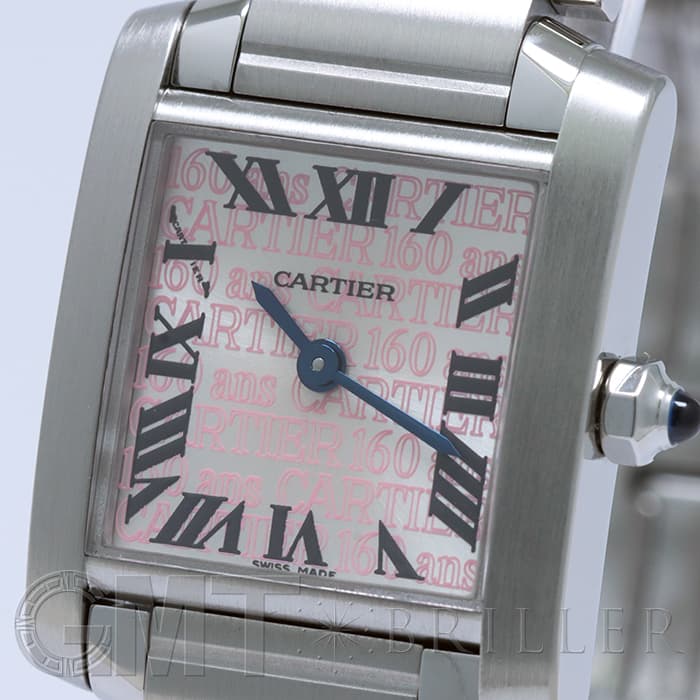 誰もが知る有名ブランドは様々な時計を手掛けてきました。 フランス軍の戦車(タンク)のキャタピラーからインスピレーションを受けたタンクシリーズに 1996年に追加されたモデルが「タンク フランセーズ」です。 ケースはタンクの美しい直線と曲線を組み合わせて作られたデザインに加え、 ブレスのセンターにケースが配置されています。 こちらは2007年に発表された創立160周年アジア限定モデルです。 シルバーのダイアルにはピンクの文字で「CARTIER160ans」、裏蓋には創業年である「1847-2007」の刻印が施されています。 他のフランセーズとは一味違うダイアルとなりますが、刻印のピンクも優しい色味で、華やかでありつつも上品な印象になっています。 希少なモデルとなりますため、ぜひお見逃しのないようご検討ください。