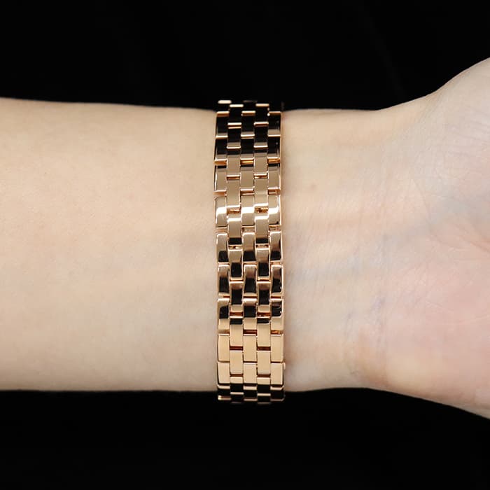 華奢なサイズ感となりますため、細身の女性の腕周りでも綺麗に収まる1本です。